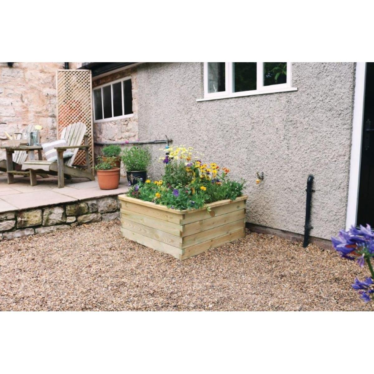 The Zest Garden Wooden Square Sleeper Raised Bed is a popular choice for gardeners as it requires little maintenance. However, it can easily transform your garden with a beautiful array of flowers or plants. Ideally suited to hard floor areas such as patios or decking. Additionally, we encourage the use of the raised bed to start growing your own fruit or vegetables. KEY FEATURES: Perfect for both flower displays and growing veg Approx 305 litres Optional base High quality, pressure treated wood This product is made of material from well-managed, PEFC certified forests and controlled sources DIMENSIONS & WEIGHT: Sizes: W 0.9m x D 0.9m x H 0.45m Materials: Softwood Weight: 26 kg CARE & MAINTENANCE: As an easy care product made from pressure treated wood that protects against rot there is no need to apply any treatment within the first 6 months of receipt. Doing so will invalidate the warranty, as this will not allow enough time for excess moisture from the pressure treatment to dry out. However, after this period you may apply annual treatment to prolong the life and look of the product.