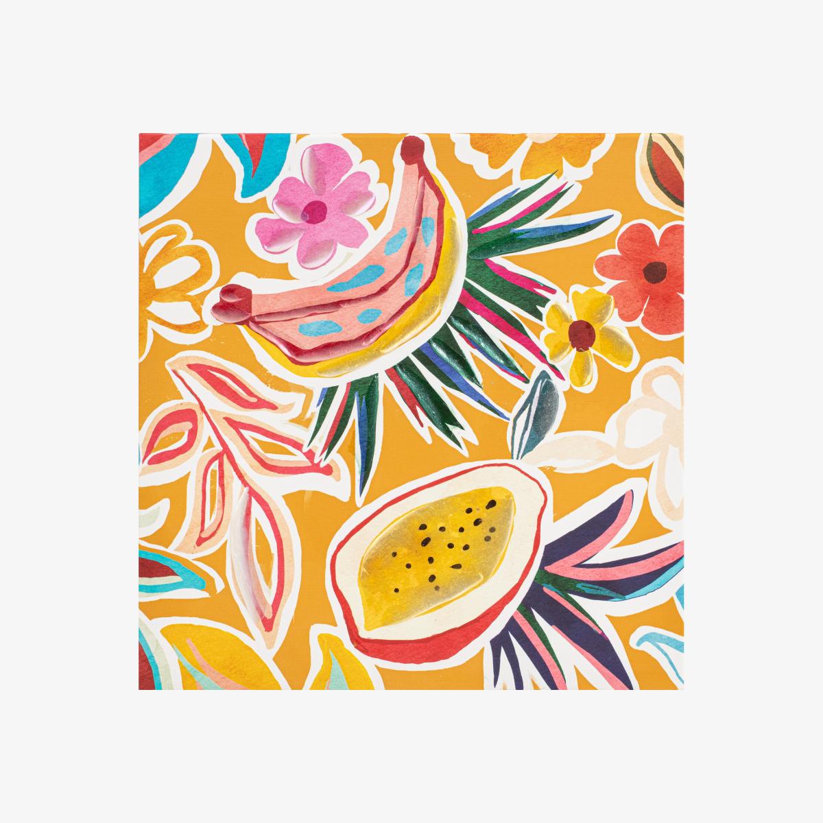 I love this fruity canvas for its fun, lively vibe and the pearlescent finish really adds a subtle shimmer that catches the light beautifully. It’s a versatile piece that works well in casual or eclectic interiors, especially kitchens, dining areas, or brightening up a modern living space. When styling, consider pairing it with neutral or colour-coordinated cushions and accessories to let the artwork stand out, or create a playful, tropical feel with matching floral accents. It’s perfect for adding colour and personality without being overwhelming, making it a practical choice for those looking to introduce a splash of fun and freshness into their home.