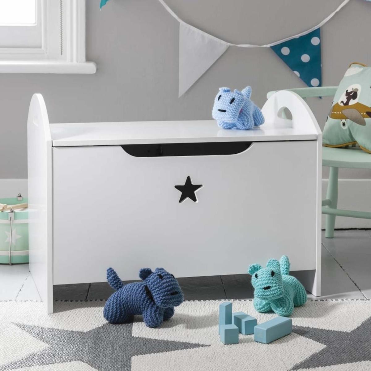Add a dose of star quality to your child's bedroom with the awesome Zeta Toy Box. Not only does this charming chest ensure a neat and tidy play space, but creates subtle style and character thanks to its pretty star design. The spacious interior is the ultimate home for teddy bears, dolls, action figures, or board games, whilst a hinged lid ensures no trapped fingers for little ones. Two convenient handles allow the chest to easily be transported from room to room. Zeta's bright white shade is chic and uplifting and promises to beautifully brighten up children's bedrooms.
