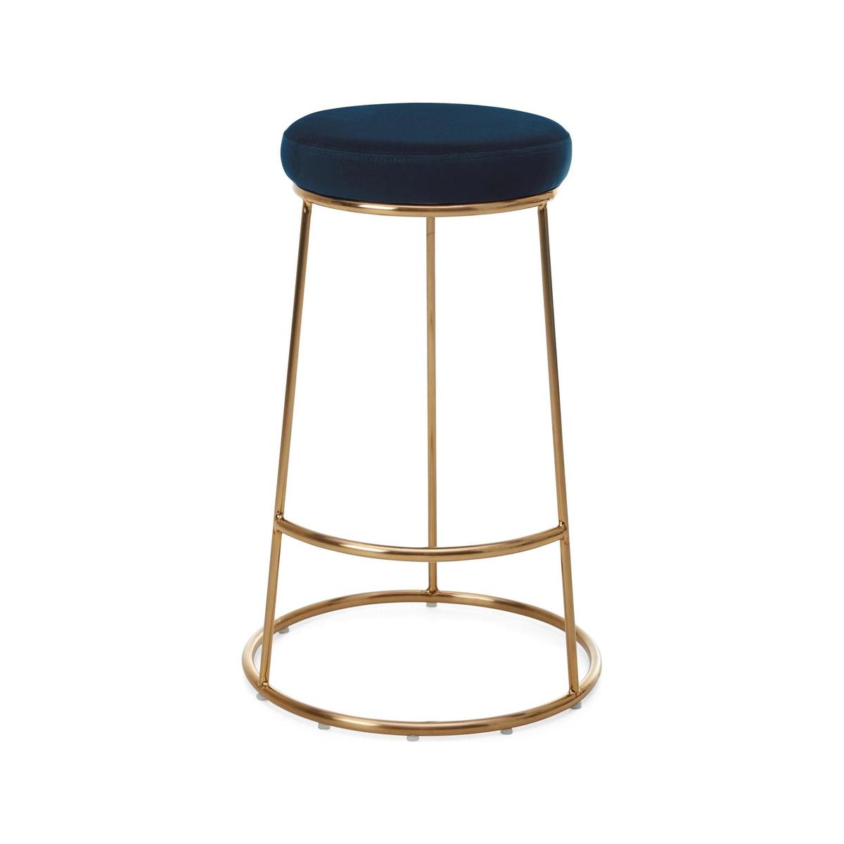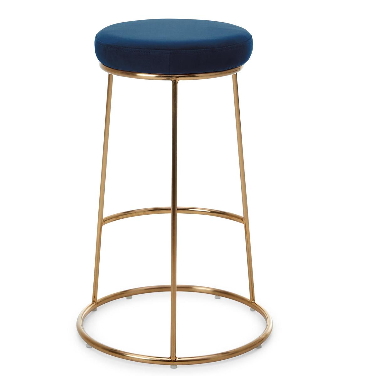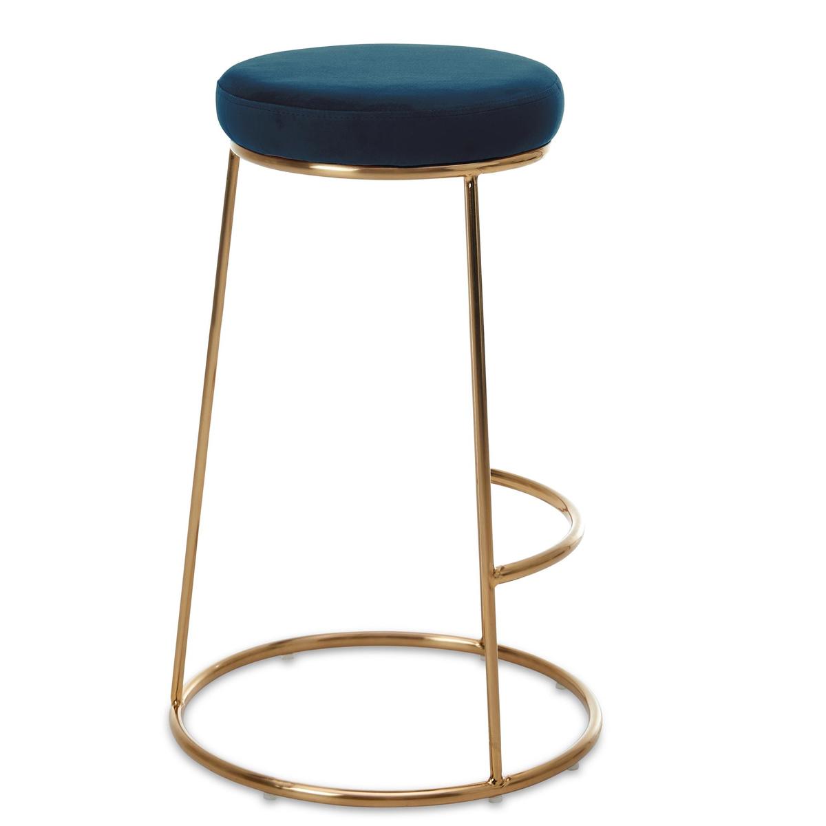 Upholstered in a luxurious velvet fabric and finished in a midnight blue colourway, the Zeta bar stool offers a contemporary luxe styling and would look great in any space. The bar stool is built on a sturdy gold coloured metal frame, complete with a crossbar footrest, and with a foam filled cushion for additional comfort.\n\nSeat Height: 68cm\nSeat Depth: 35cm\n\nPlease Note: This product and any of its fabrics have been manufactured for domestic use only.\n\nOther colours are also available. [Click here to view the full Zeta bar stool collection](https://www.dunelm.com/search?q=zeta+bar+stool)