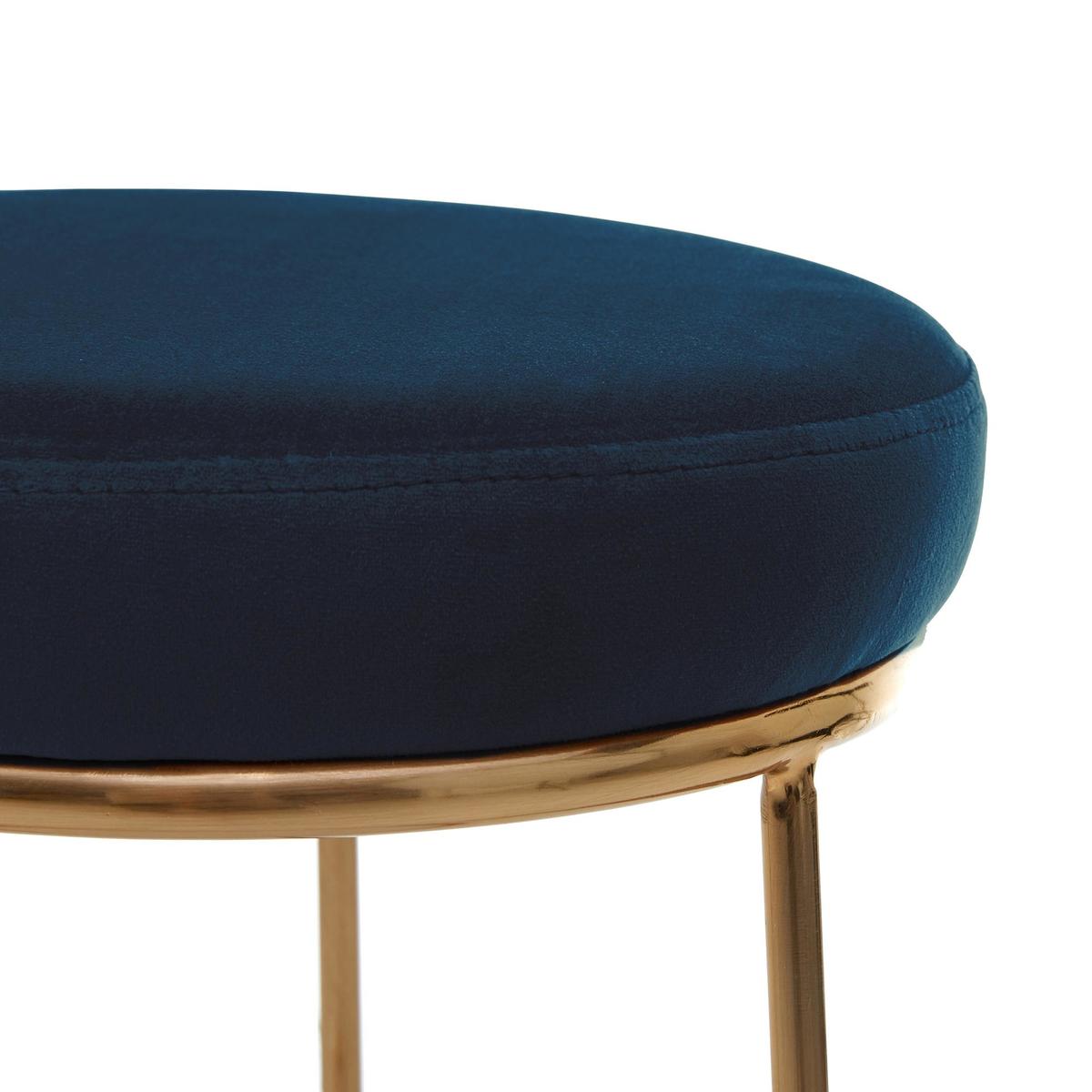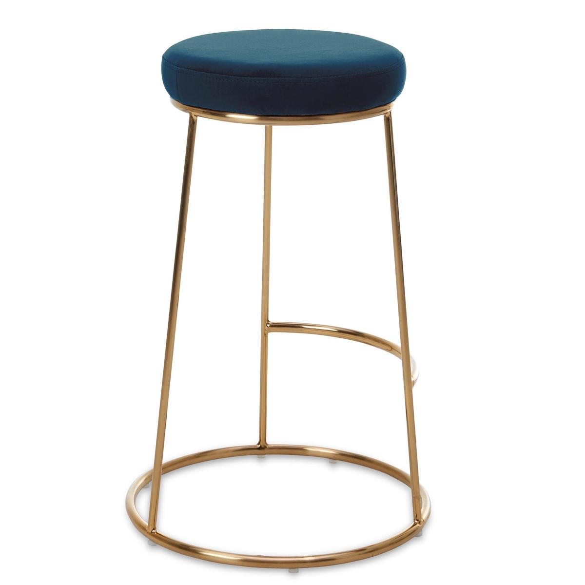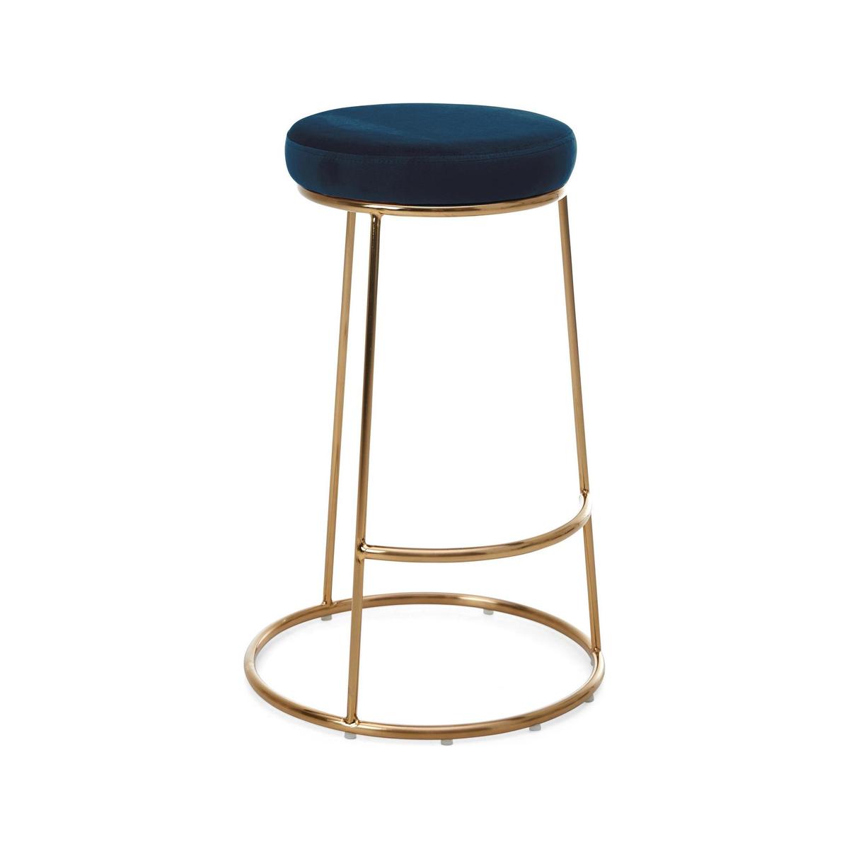 Upholstered in a luxurious velvet fabric and finished in a midnight blue colourway, the Zeta bar stool offers a contemporary luxe styling and would look great in any space. The bar stool is built on a sturdy gold coloured metal frame, complete with a crossbar footrest, and with a foam filled cushion for additional comfort.\n\nSeat Height: 68cm\nSeat Depth: 35cm\n\nPlease Note: This product and any of its fabrics have been manufactured for domestic use only.\n\nOther colours are also available. [Click here to view the full Zeta bar stool collection](https://www.dunelm.com/search?q=zeta+bar+stool)