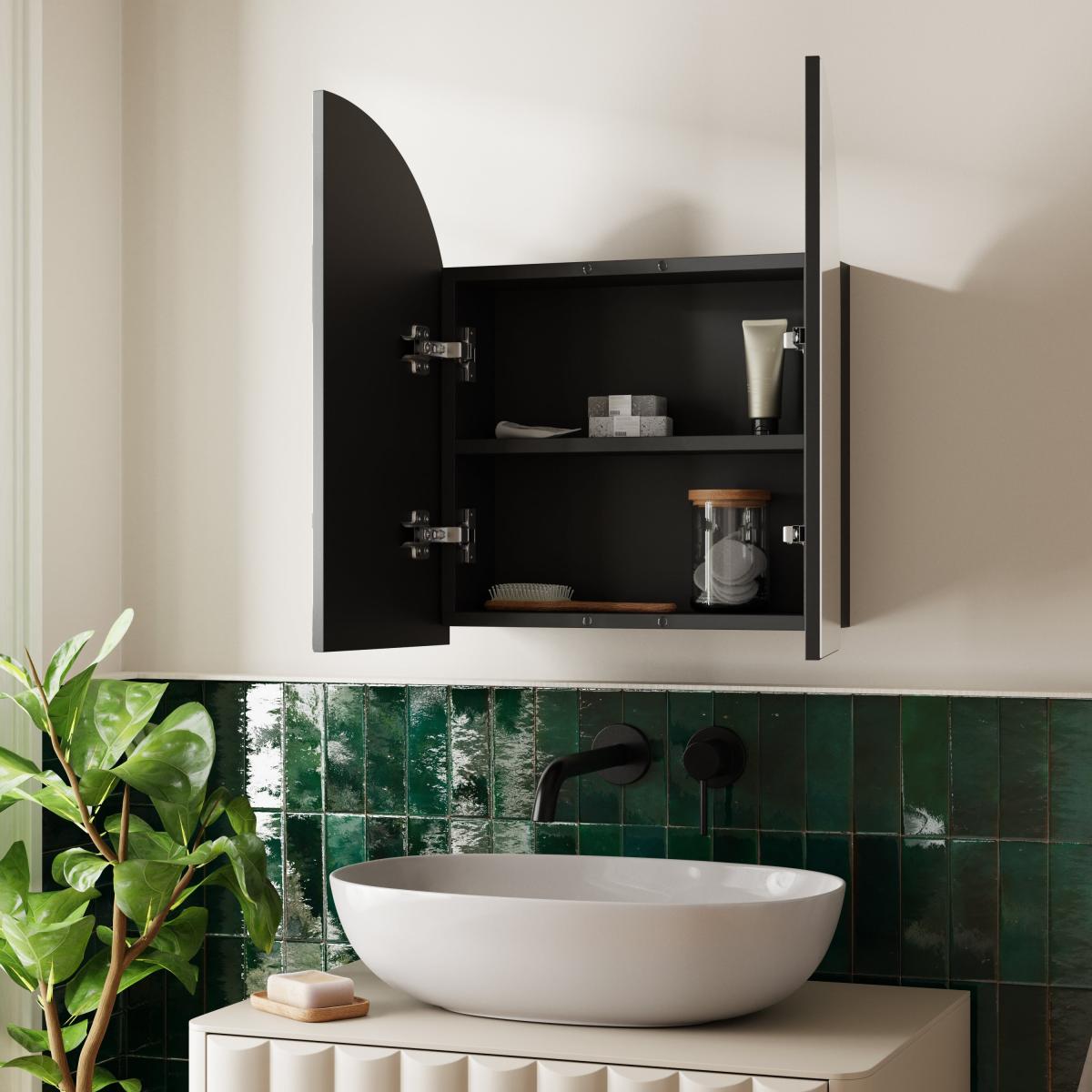I love the Zia Arched Mirror Wall Cabinet for its sleek, minimalist design that seamlessly blends form and function. Its arched mirror adds both visual interest and practicality - perfect for small spaces where functionality is key. It works well in contemporary or modern interiors, especially when paired with monochrome palettes or textured finishes. Practical styling tips include using the mirrored surface to reflect light and enhance space, and organising essentials inside to keep countertops clutter-free. This piece is ideal for bathrooms, hallways, or even in living areas to add a touch of elegance while maintaining practicality.
