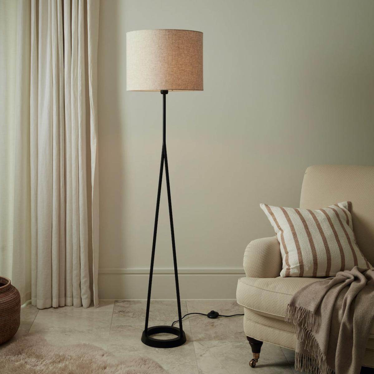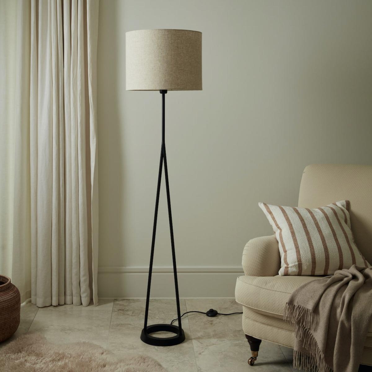 I really like this floor lamp for its sleek black tripod base combined with the natural drum shade, which brings warmth and texture to any space. It works particularly well in modern or minimalist interiors, but can also add a sculptural touch to more eclectic settings. A great styling tip is to position it next to a cosy armchair or sofa to create an inviting reading nook. For a layered look, pair it with other black or earthy-toned accessories, and make sure the shade stays unobstructed to optimise the gentle, diffused light - perfect for creating a relaxed atmosphere.