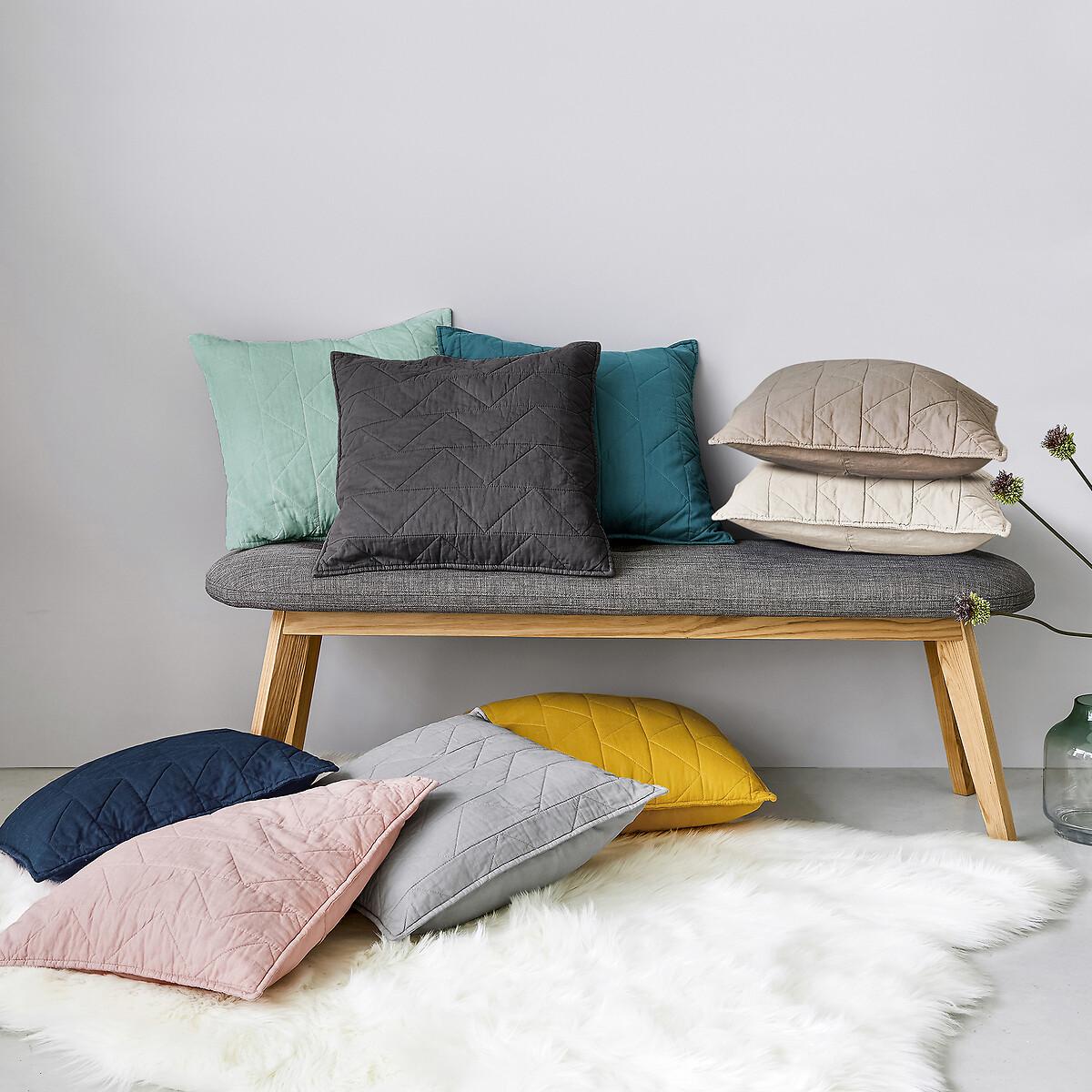 I really like this cushion cover because of its clean, geometric design, which adds a subtle visual interest without overwhelming a space. It works particularly well in modern or minimal interiors, but can also bring a contemporary edge to more traditional settings when paired with textured or layered textiles. I’d recommend these cushions to be used as part of a neutral palette for understated sophistication, or mixed with bolder colours for a playful contrast. Practical styling tips include pairing with different sized cushions for a layered look on sofas or beds, and keeping the surrounding decor relatively simple to let the pattern stand out. Plus, the 100% cotton fabric ensures durability and easy maintenance, making it both stylish and functional.
