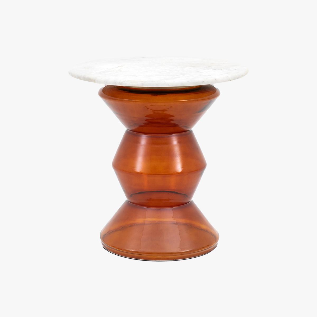 The Zig-Zag Side Table has been designed to be a striking focal point in your living space. The combination of a glass base, bronze detailing and a marble top provides the perfect synergy of modernity and luxury.