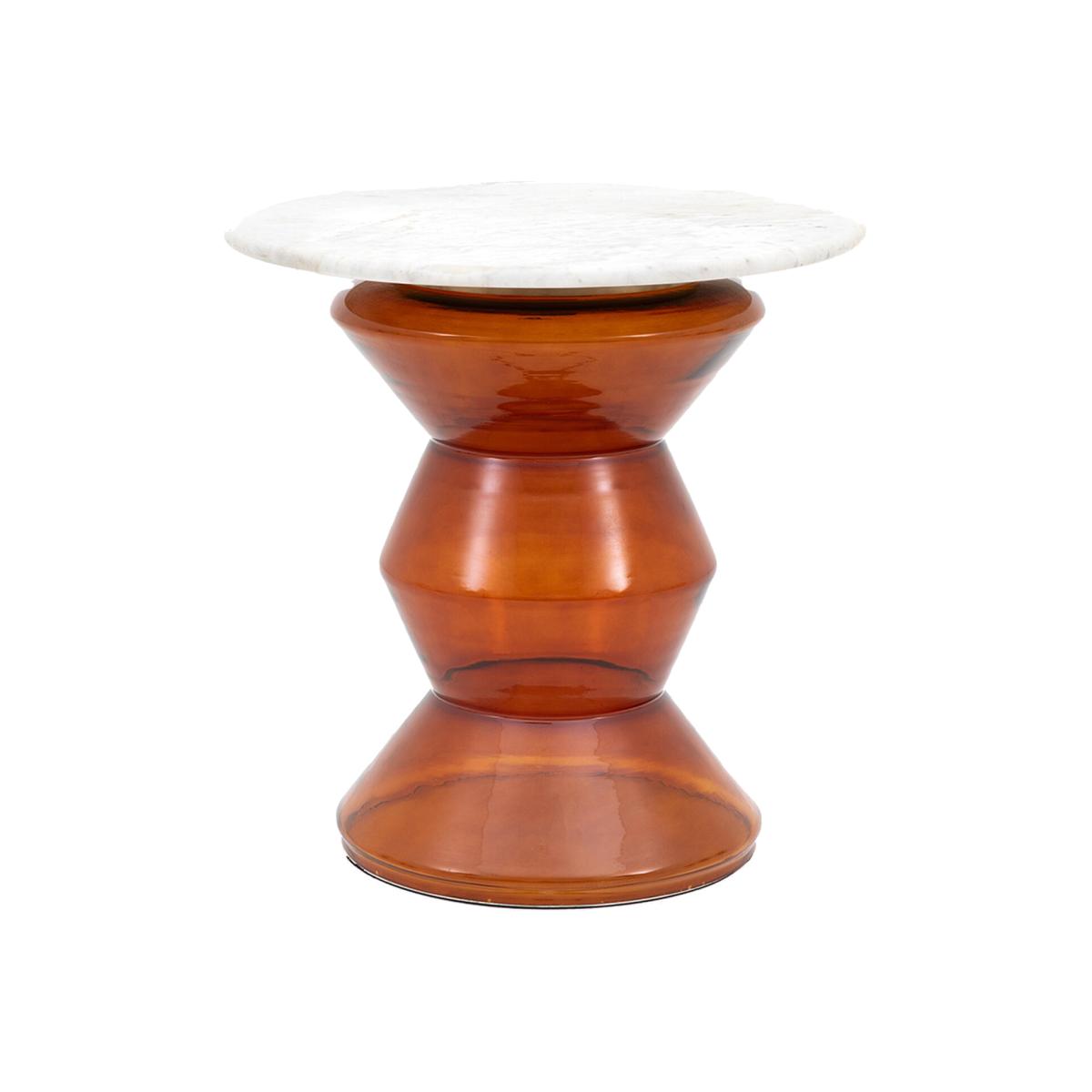 The Zig-Zag Side Table has been designed to be a striking focal point in your living space. The combination of a glass base, bronze detailing and a marble top provides the perfect synergy of modernity and luxury.
