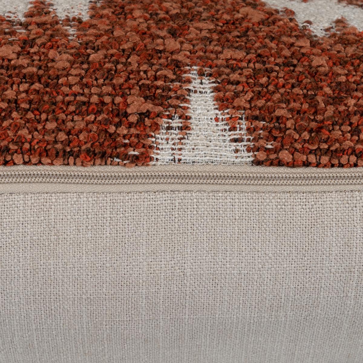 Muted tones and a beautiful design are merged to create the stunning Zigzag Rust Cushion. Perfect to add to a sofa in your living space alone or with other complimentary cushions to accomplish a stunning layered effect. Made from on-trend boucle fabric with a complimentary reverse and a knife edged finish perfect to make a real style statement in your home.