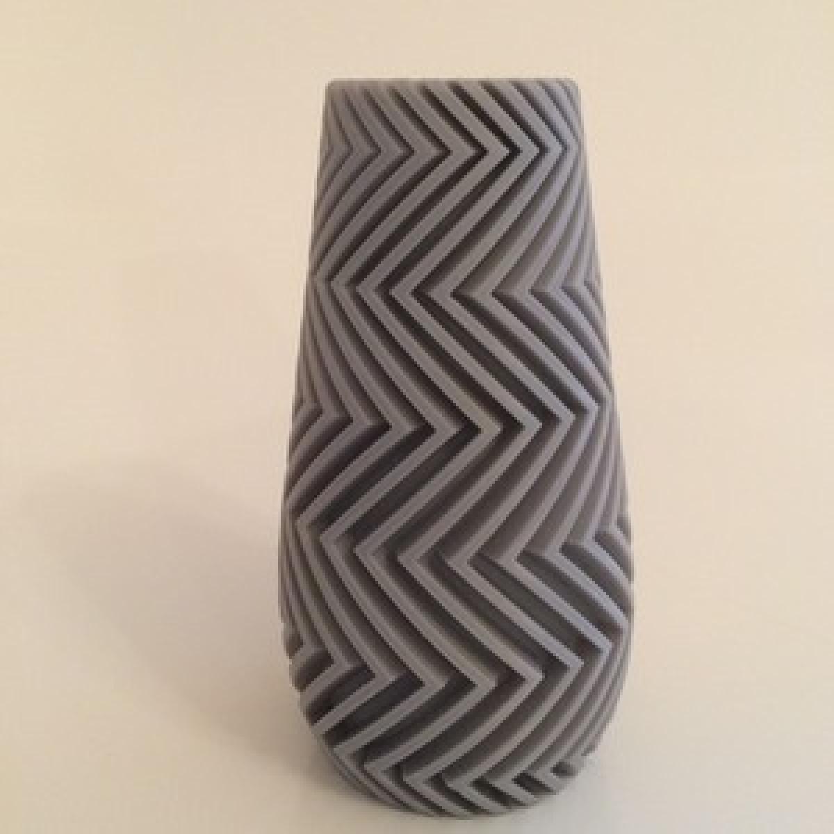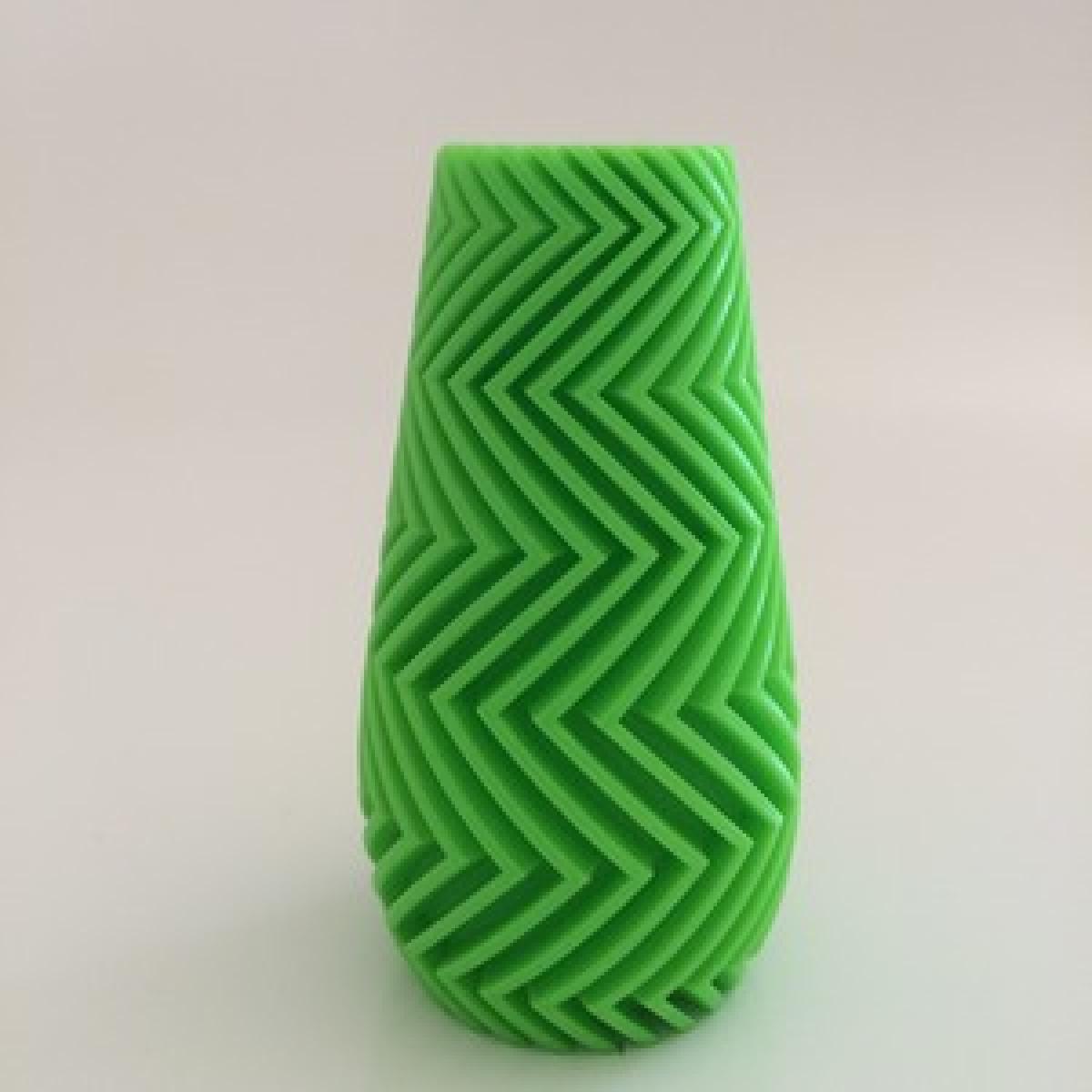 A stylish 3d printed vase with a zigzag design effect. Available in various colours to enhance any room setting. Manufactured in the UK using the latest pioneering 3d printing. Suitable for artificial flowers.