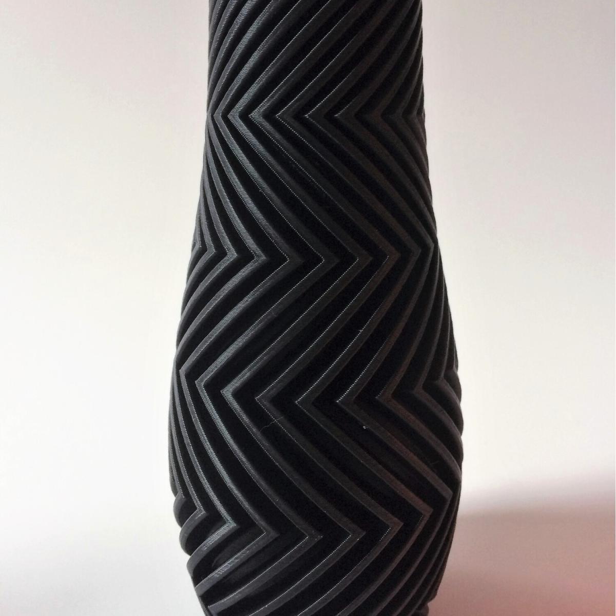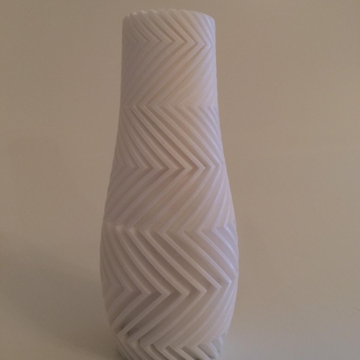 A stylish 3d printed vase with a zigzag design effect. Available in a range of colours to enhance any room setting. Manufactured in the UK using the latest pioneering 3d printing. Suitable for artificial flowers.
