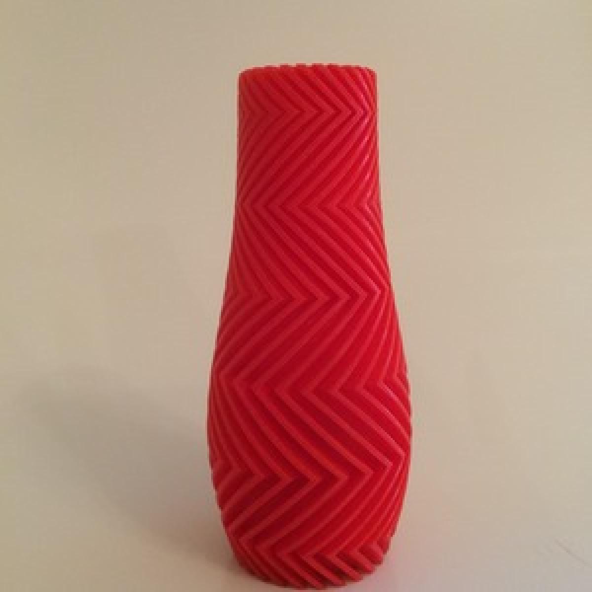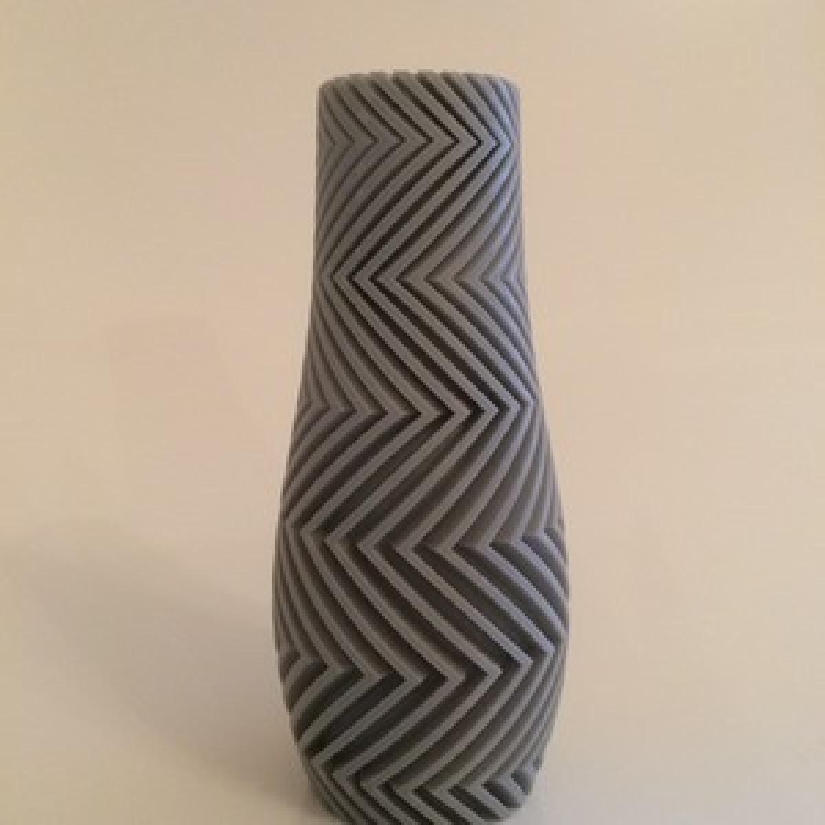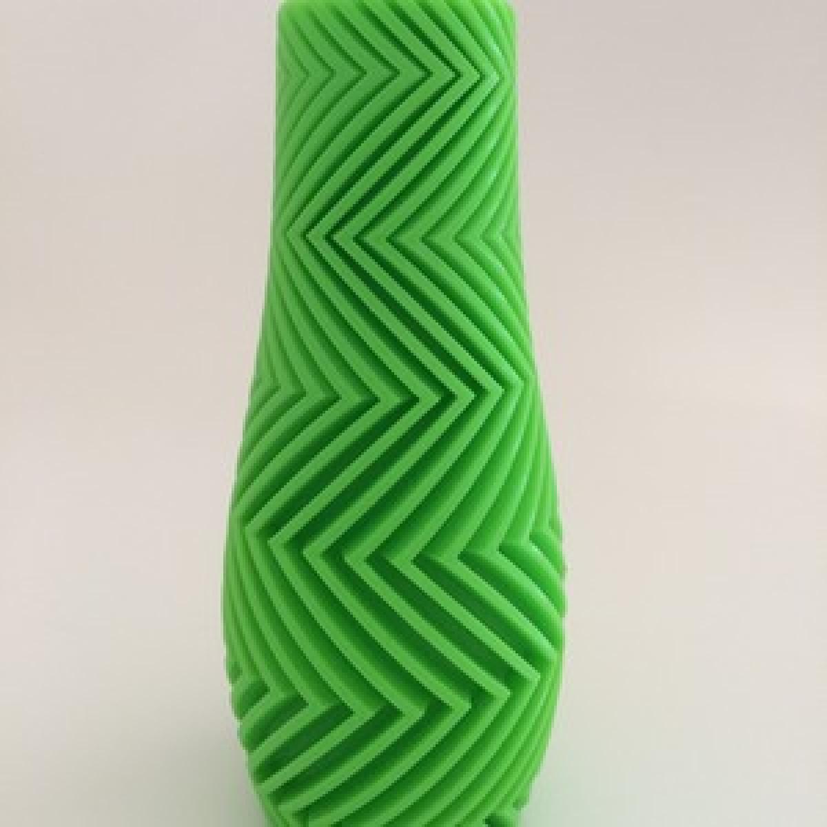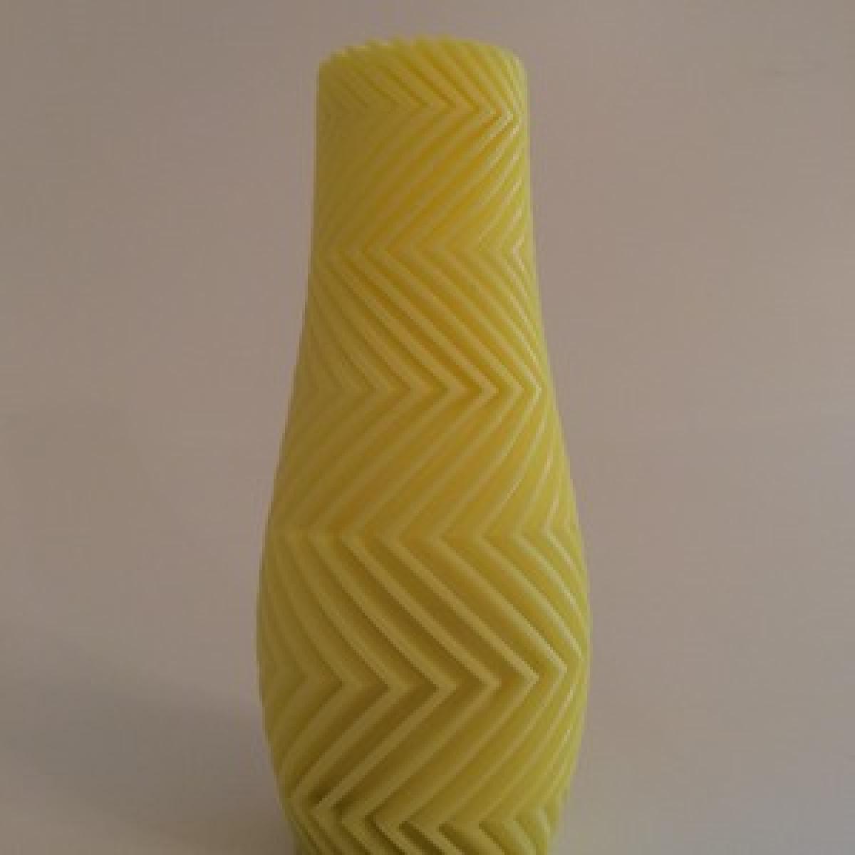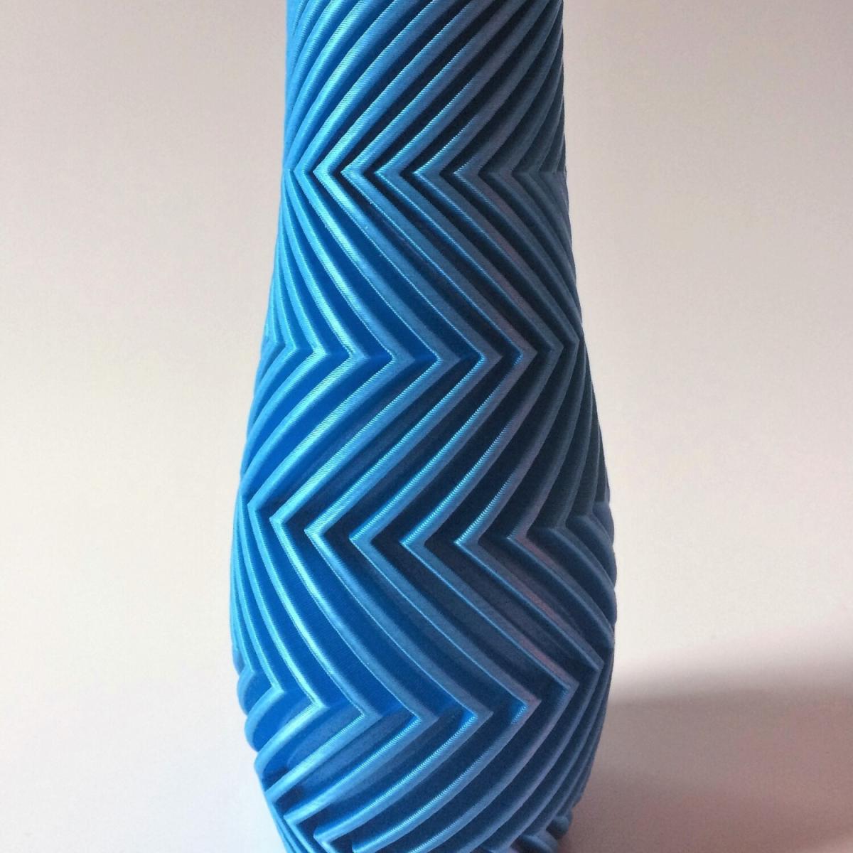 A stylish 3d printed vase with a zigzag design effect. Available in a range of colours to enhance any room setting. Manufactured in the UK using the latest pioneering 3d printing. Suitable for artificial flowers.