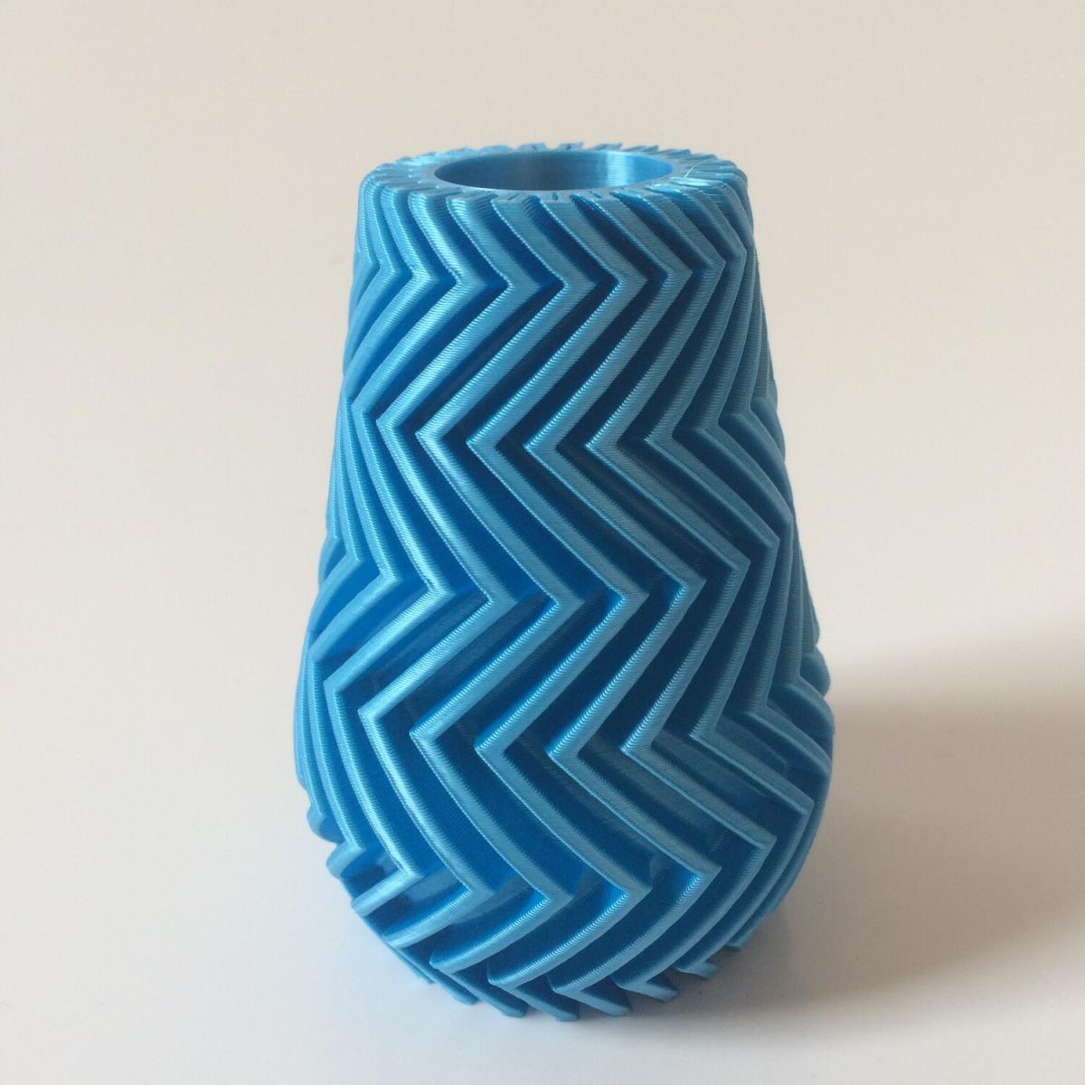 A stylish 3d printed vase with zigzag design effect. Available in various colours to enhance any room. Manufactured in the UK using the latest pioneering 3d printing. Suitable for artificial flowers.