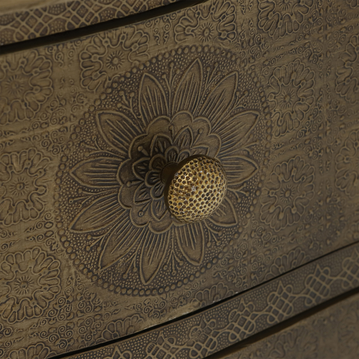 A homely brass finish that works perfectly with the Zinnia’s intricate embossed design and is sure to add an inviting warmth to any space, this gorgeous bedside is packed with stylish character making it an eye-catching feature no matter where its placed. A linear frame that includes subtle curves for a welcome touch of softness, the Zinnia looks phenomenal in both modern and traditional decors whether you choose to keep it in your bed space or venture it further into your home as a handy lamp table to highlight its exquisite floral detailing.