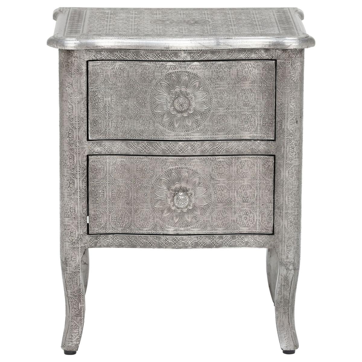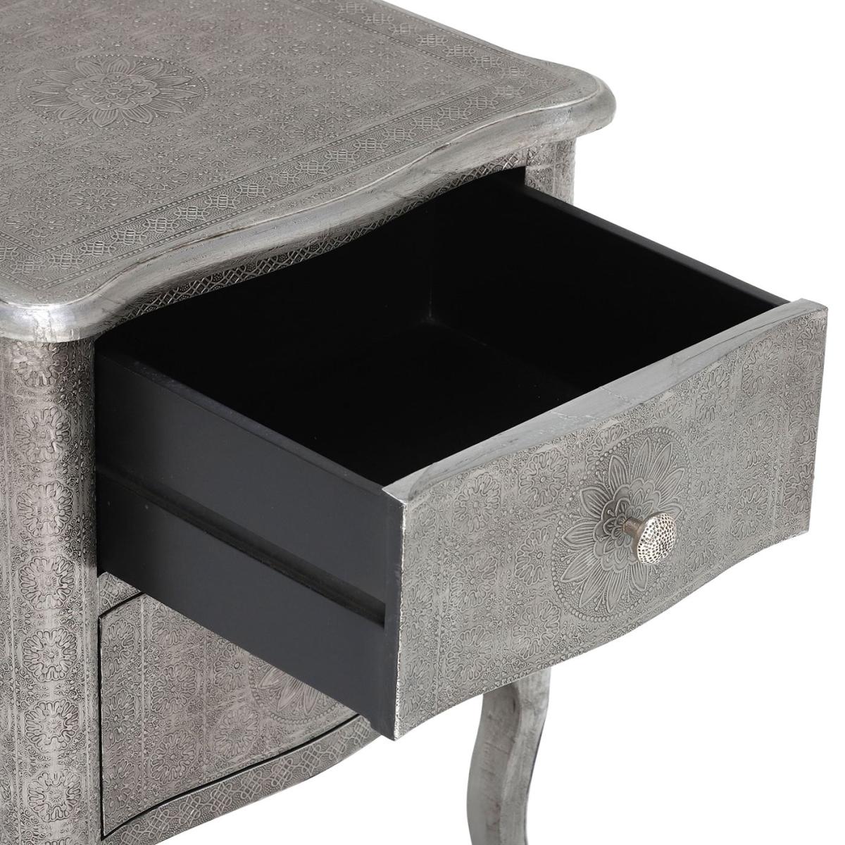 Design. With an intricate design that makes the Zinnia more than just your average bedside, this stunning piece has a glorious modern-vintage look that’s crowning feature is its pressed aluminium surface, embossed with a detailed floral design. Finding the perfect balance of contemporary, clean lines and subtle, classic curves, the Zinnia Bedside looks fantastic in both modern and more traditional interiors – and if you don’t want to hide it away in your bedroom, the practical Zinnia doubles as a lamp table. Housing 2 roomy drawers for stowing away your essentials, the Zinnia is sure to make an impact wherever its placed – why not top with a lighting accessory and make the most of its metallic beauty.