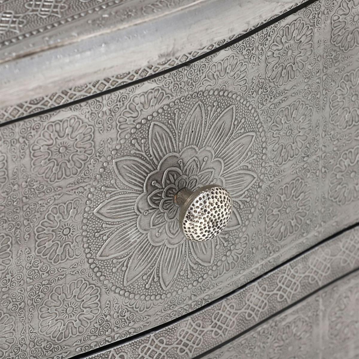 Design. With an intricate design that makes the Zinnia more than just your average bedside, this stunning piece has a glorious modern-vintage look that’s crowning feature is its pressed aluminium surface, embossed with a detailed floral design. Finding the perfect balance of contemporary, clean lines and subtle, classic curves, the Zinnia Bedside looks fantastic in both modern and more traditional interiors – and if you don’t want to hide it away in your bedroom, the practical Zinnia doubles as a lamp table. Housing 2 roomy drawers for stowing away your essentials, the Zinnia is sure to make an impact wherever its placed – why not top with a lighting accessory and make the most of its metallic beauty.