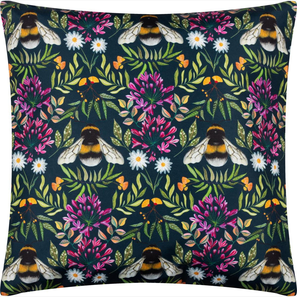In superb hand-painted detail, a swarm of humble bumbles bees buzz happily among the surrounding bright florals, set against a rich, navy background and printed on UV, water-resistant Polyester fabric. Bring a touch of nature to your outdoor space with the beautifully designed Zinnia Bee cushion.