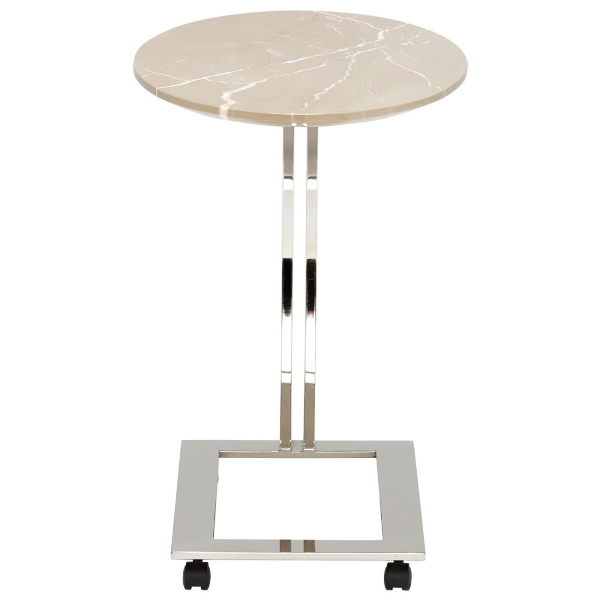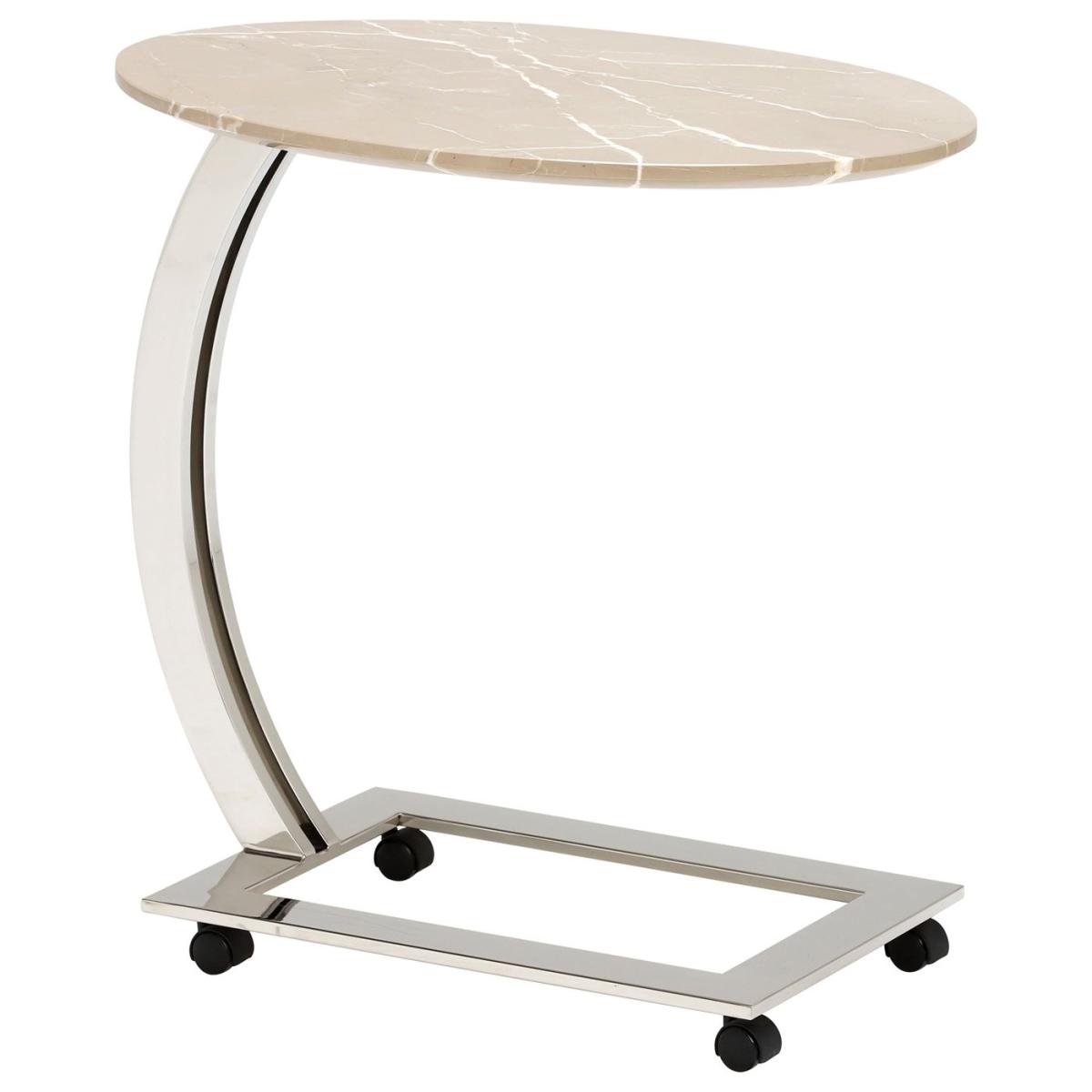 Design. This stylish and sleek piece combines luxury and functionality, the oval top has been beautifully crafted from solid marble and is elegantly supported by a polished chrome arm and base featuring casters allowing you to easily manoeuvre this piece around you living space.
