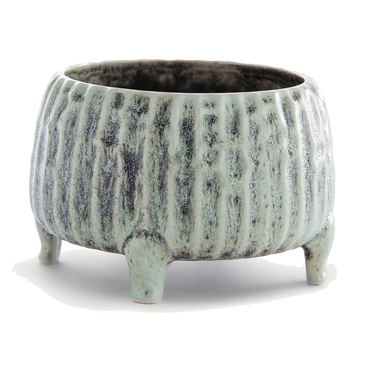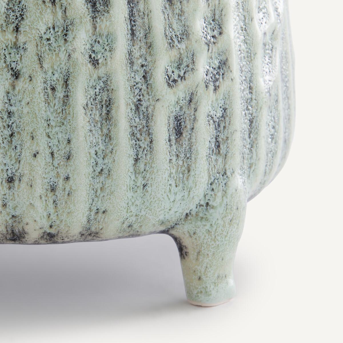 Handcrafted in Portugal, Zira expresses the art of pottery through unique details. Its shades of green-grey, raised texture and small curved feet are reminiscent of old plant pot holders. A touch of authenticity for your plants, indoors or outdoors. Product Details • Shiny ceramic • Each piece is unique, colours may vary from one product to another • Hand-made in Portugal Care Advice • Ceramic is a solid material resistant to shocks, scratches and stains.. It can be cleaned with a damp sponge. Dimensions • Diameter: 17.5cm • Height: 12.5cm • MADE IN PORTUGAL.Dimensions and weight of parcel • 1 parcel • W24.5 x H20.5 x D24.5cm. 1.1kg