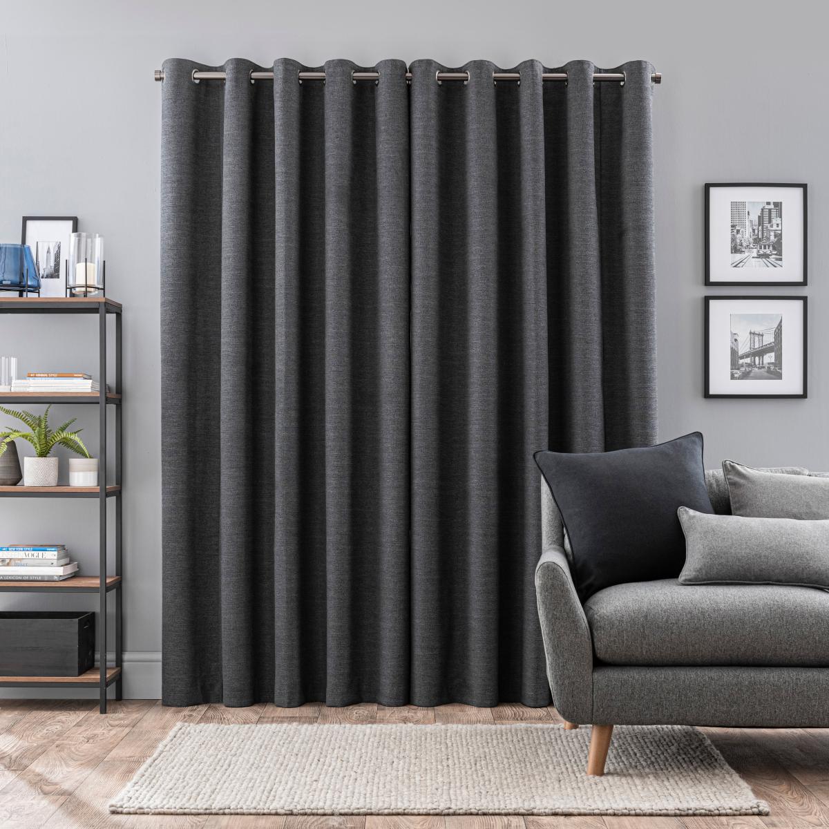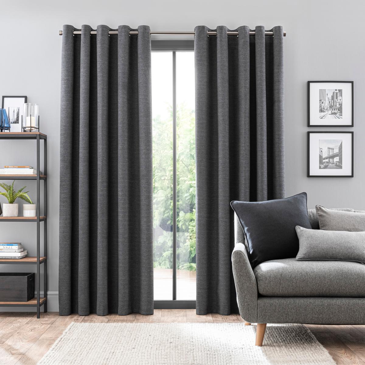Zodiac Charcoal Blackout Eyelet Curtains Charcoal