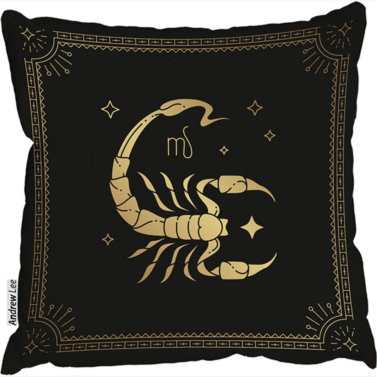Zodiac Scorpio Horoscope In Black Gold Stylish Cushion - Gold / 60cm