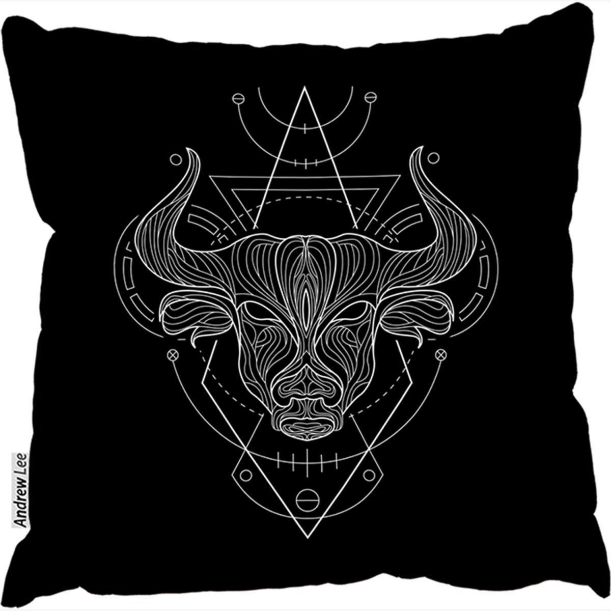 Zodiac Taurus Geometric Stylish Cushion - Black / 60cm