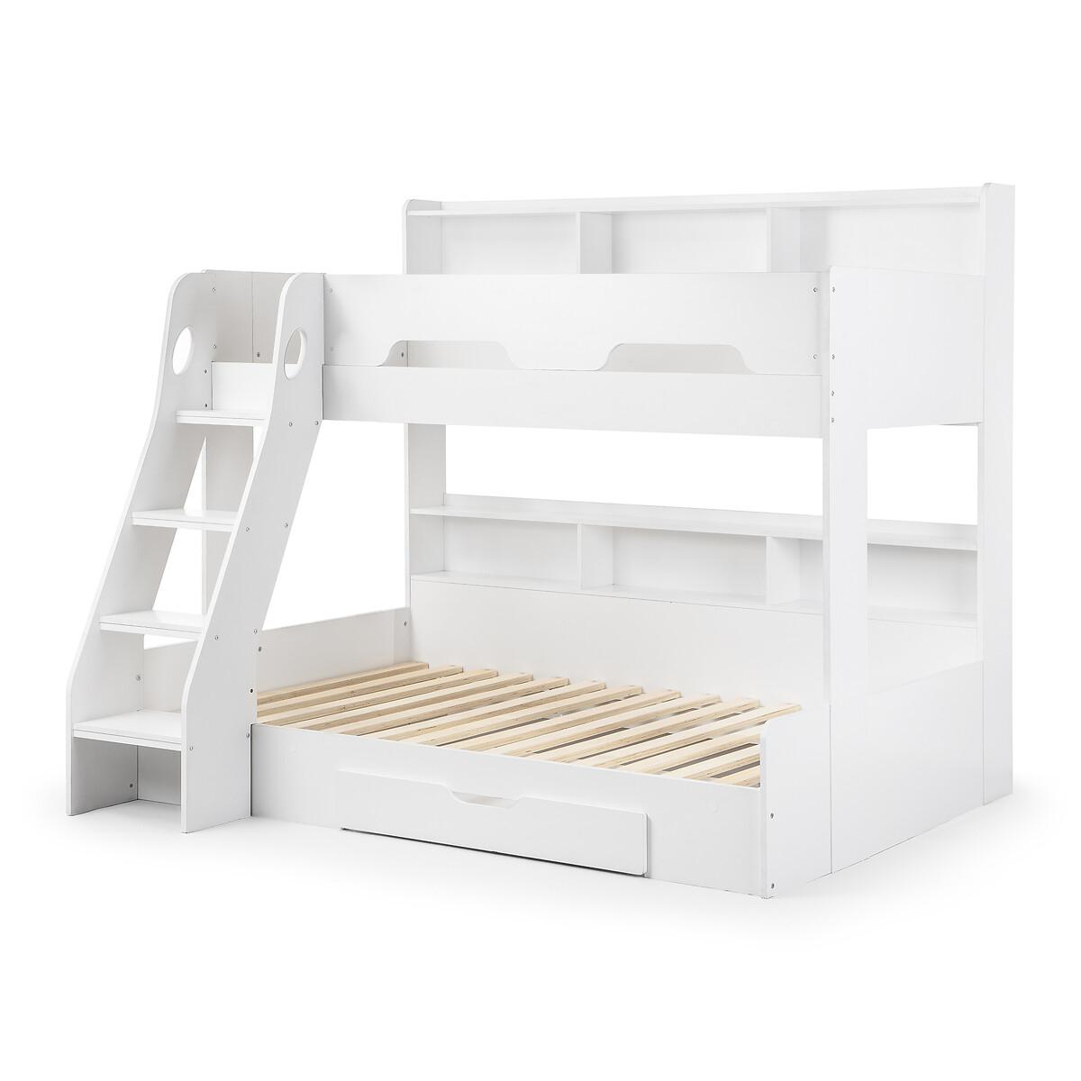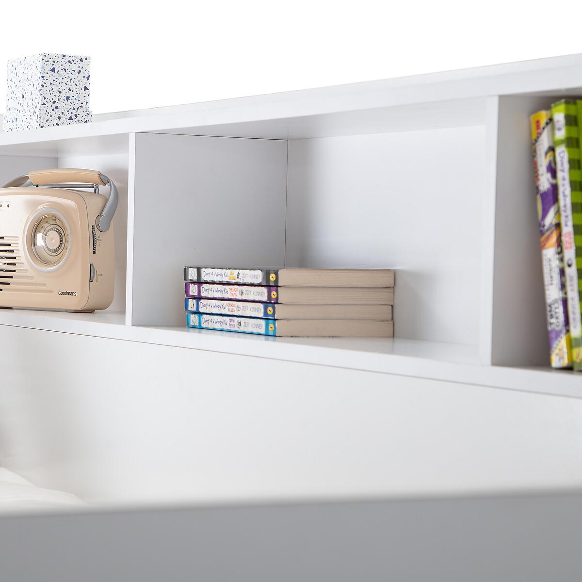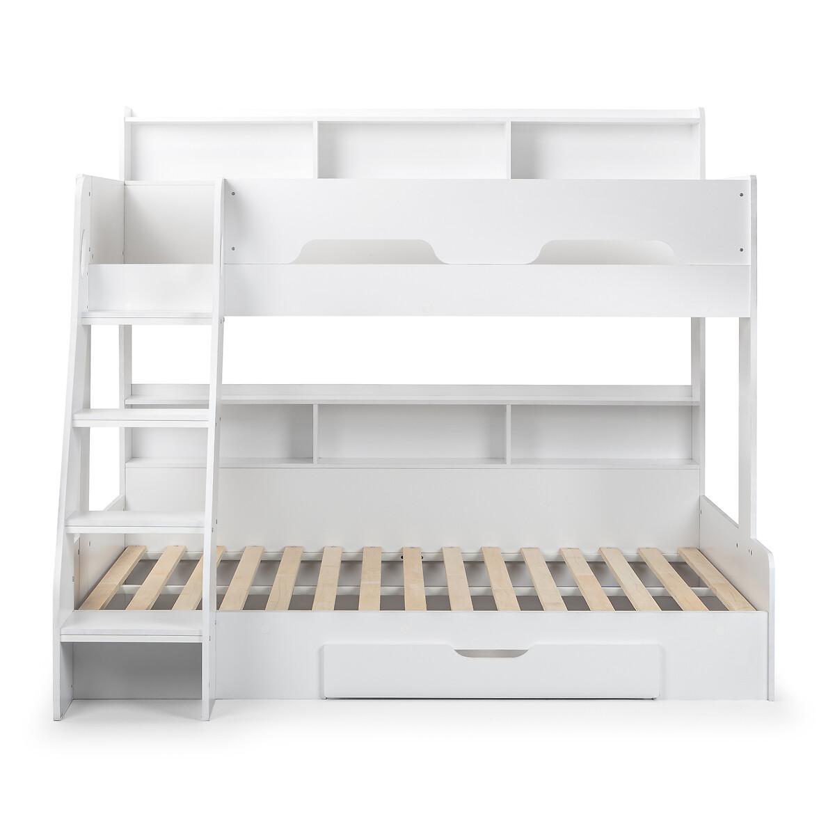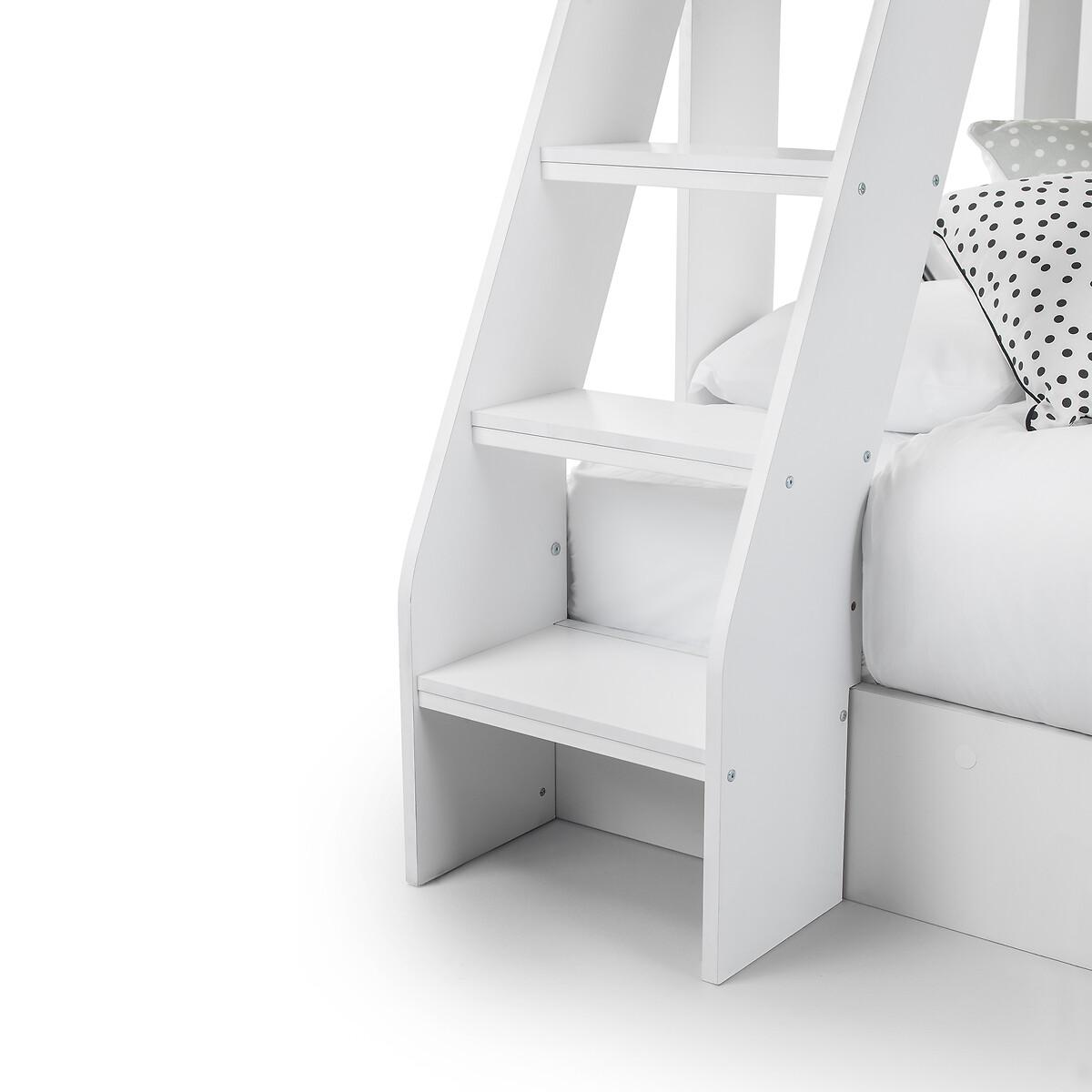The Zodiac combines style with great practicality and includes a handy pull-out drawer and extensive shelving for kids' books and toys, with a subtle raised lip to prevent anything slipping down the back. The robust ladder features attractive cut-out handles and optional glow-in-the dark strips on the steps for added safety. Product details• Includes a single bed and a small double bed.• Sleeps up to three people• Single drawer• 2 large and 6 small shelves• Subtle raised lip to prevent anything slipping down the back.• Staircase style ladder with glow in the dark strips for added safety when navigating the steps in darkness• Assembly required• Fixings included• Max weight capacity - 12 stone (upper bunk)• Compatible with Standard UK single 90 x 190 & UK small double 120 x 190 cm mattresses• Mattress not included• Maximum mattress height - 17cm. To minimise the danger of falling from the top bunk, we recommend that the top of the mattress should always be at least 16cm below the top of the lowest part of the guardrail. • 12 month product guarantee. Composition - 100% Chipboard Overall Dimensions 196 cm x 98.5 cm x 178.5 cm , Weight - 143 KGDistance Between Bunks - 65.5 cm. Top of side rail to floor - 24/120 cm. Bottom of side rail to floor - 0/105 cm Guard rail height - 24.5 cm Distance from floor to top of ladder - 145 cm. Internal Drawer Dimensions - 14.5 x 92 x 50 cm. Shelf dimensions - Small Shelf - 63.5 x 18 x 20 Large Shelf - 193 x 18 cm Package Dimensions: Parcel 1 Packaged Dimensions - 143.5 cm x 54.5 cm x 12.5 cm, Weight 34 KGParcel 2 Packaged Dimensions - 183.5 cm x 59.5 cm x 9.5 cm, Weight 36 KGParcel 3 Packaged Dimensions - 143.5 cm x 58.5 cm x 12.5 cm, Weight 37 KGParcel 4 Packaged Dimensions - 200.5 cm x 51 cm x 13 cmcm, Weight 36 KGPlease note: this product cannot be be delivered to all Offshore Islands Northern Ireland or Republic of Ireland. This product will be dispatched by one of our trusted suppliers. You’ll be contacted by their selected courier about your delivery.