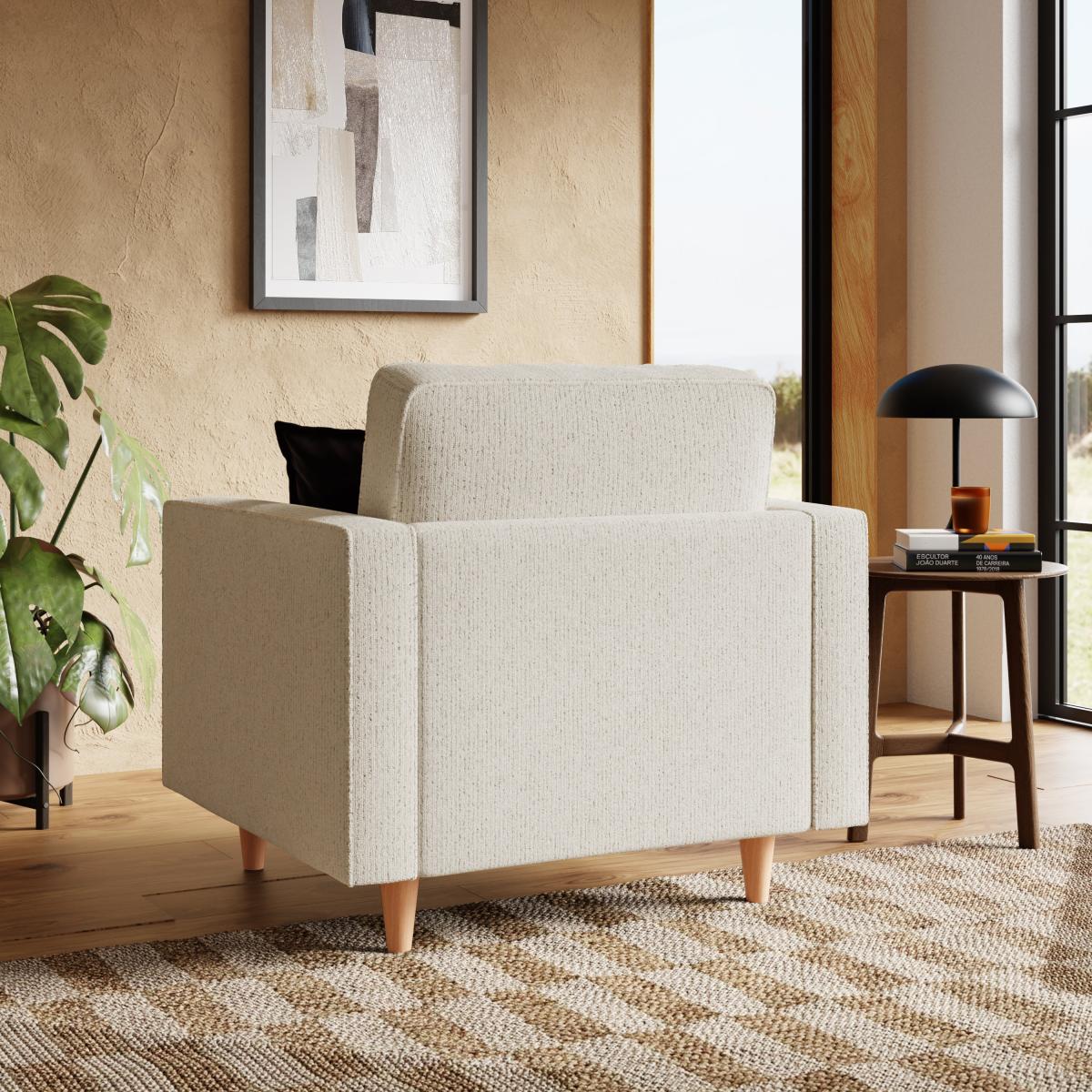 I’m a big fan of the Zoe chair for its soft boucle texture and subtle flecked yarns, which add tactile interest without overwhelming a scheme. Its neutral cream tone and clean lines make it at home in Scandi-inspired lounges, Japandi retreats or contemporary living rooms, while the light timber legs tie in neatly with natural-fibre rugs and oak side tables. For a lived-in look, drape a chunky knit throw over one arm, pop a small brass-trimmed side table alongside and finish with a sculptural plant or ceramic lamp for balance and warmth.