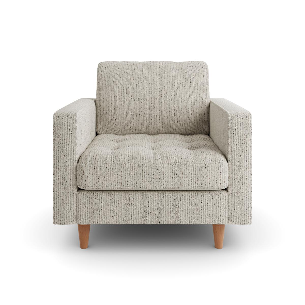 Dunelm Exclusive - Designed and Developed by Dunelm. The Zoe Armchair is a chic, cosy chair that brings texture and comfort to any room. Upholstered in soft bouclé flek fabric, the chair’s inviting feel makes it an excellent choice for both relaxation and style. Its clean lines and luxurious fabric create a timeless look, while the plush cushioning ensures maximum comfort.