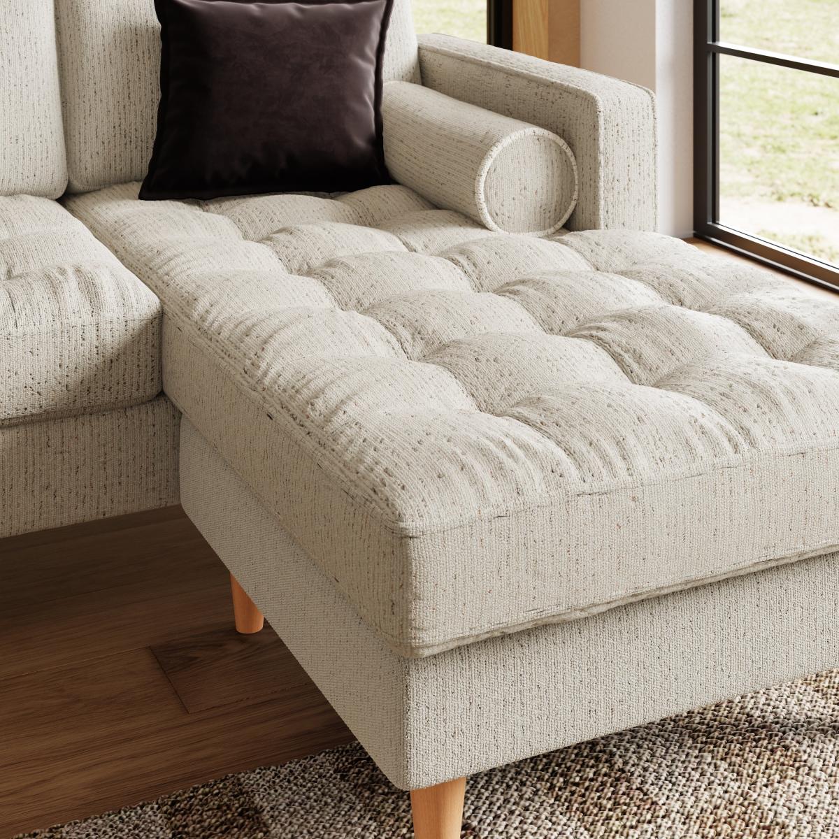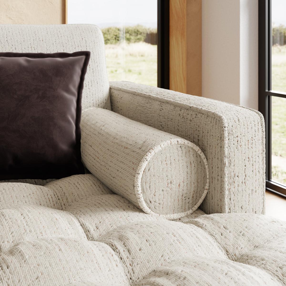 Dunelm Exclusive - Designed and Developed by Dunelm. The Zoe Corner Chaise Sofa is a luxurious and spacious addition to your home. With its textured bouclé flek upholstery, this corner chaise offers both comfort and style. Its versatile design maximises seating space, while the chaise end provides the perfect place to relax and stretch out. The unique fabric adds a touch of sophistication, making it the perfect centrepiece for any living room that balances both form and function.