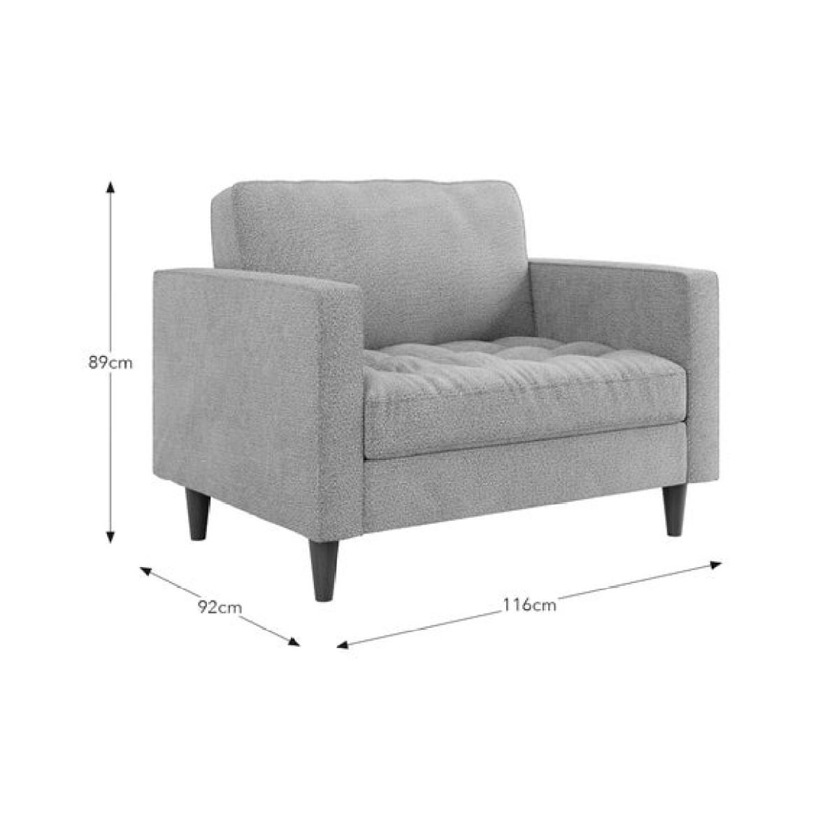 * Sleek, modern chair * Rubberwood legs * Foam and Fibre filled seat Generously proportioned and beautifully textured, this 3 seater sofa is upholstered in our new multi yarn boucle, offering a soft, tactile finish that adds depth and warmth to any space. Designed with comfort in mind, it features improved seat cushions that provide a deeper, more relaxed sit, perfect for everyday lounging.
