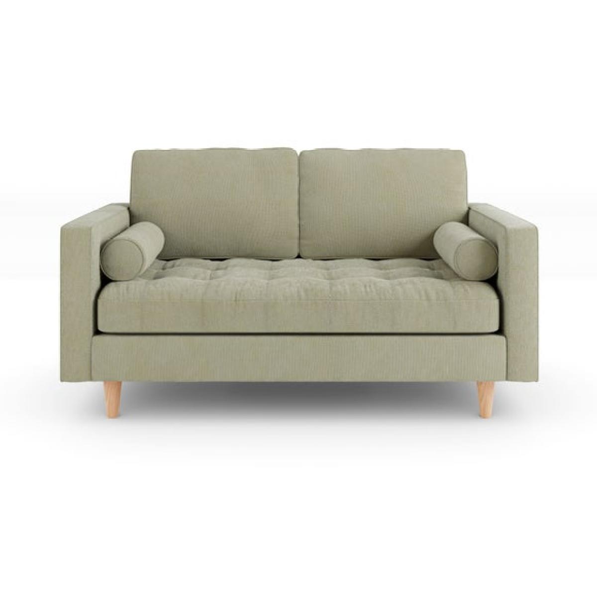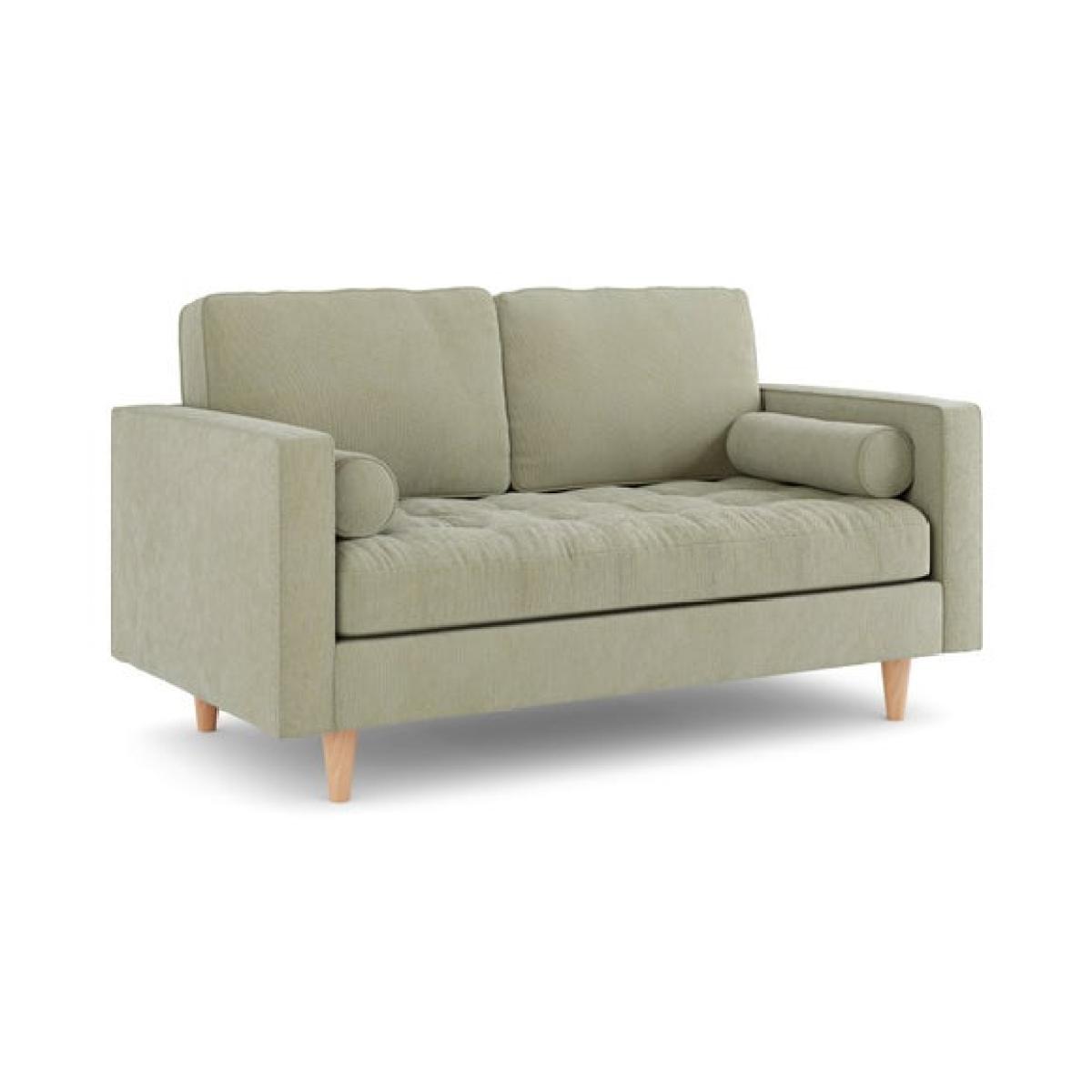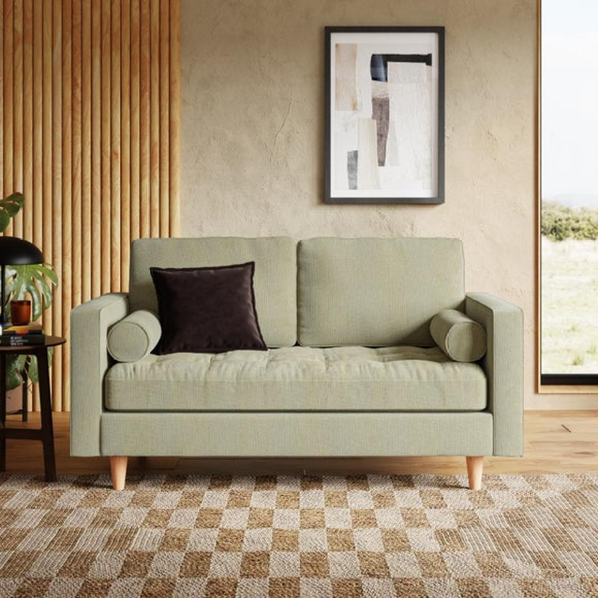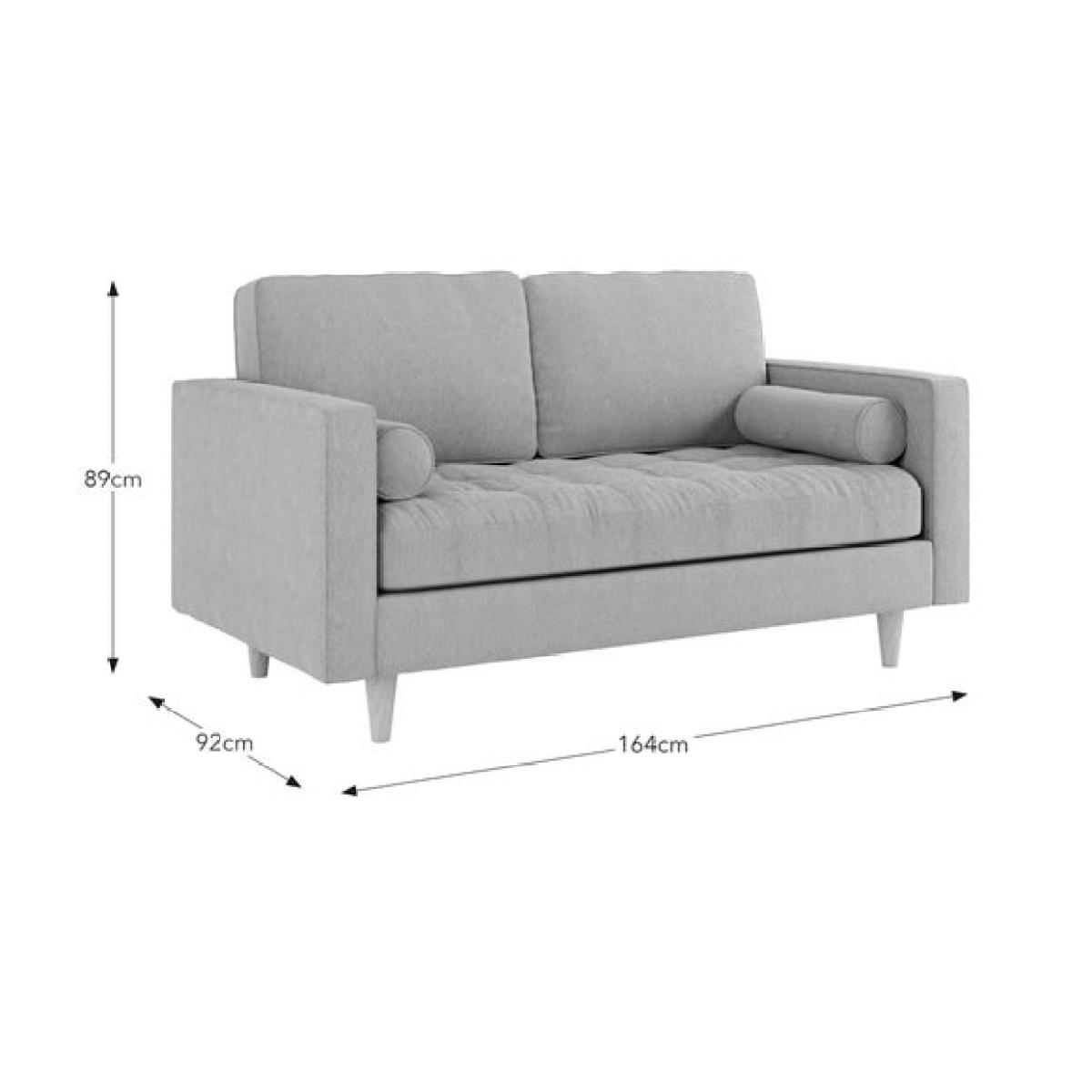 * Sleek, modern sofa * Buttoned detailing * Rubberwood legs * Foam and Fibre filled seat Crafted in our soft tonal chenille, this 2 seater sofa brings a calming, tactile quality to your living space. The subtle texture of the fabric adds a layer of visual interest, while the newly enhanced seat cushions provide a deeper, more supportive sit.