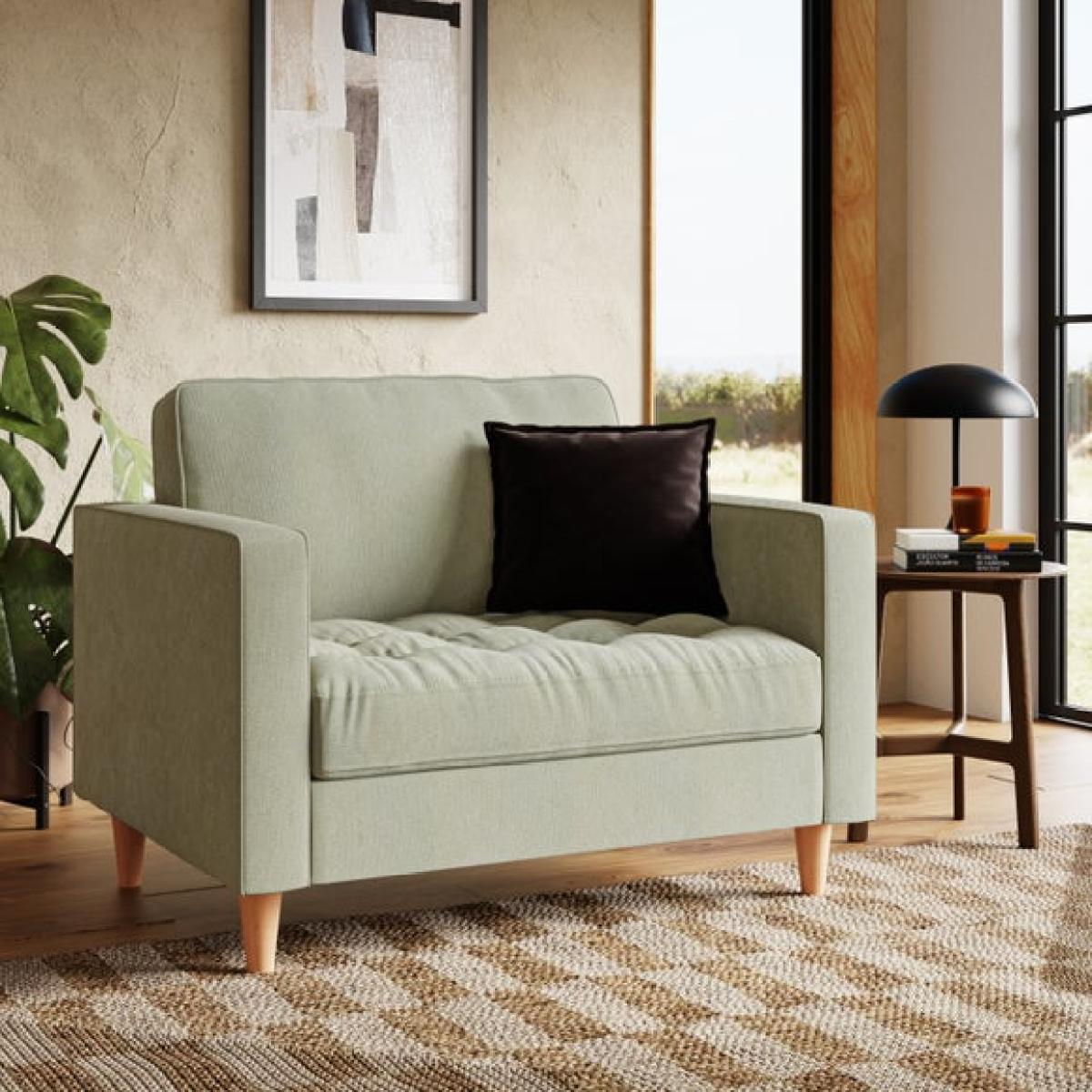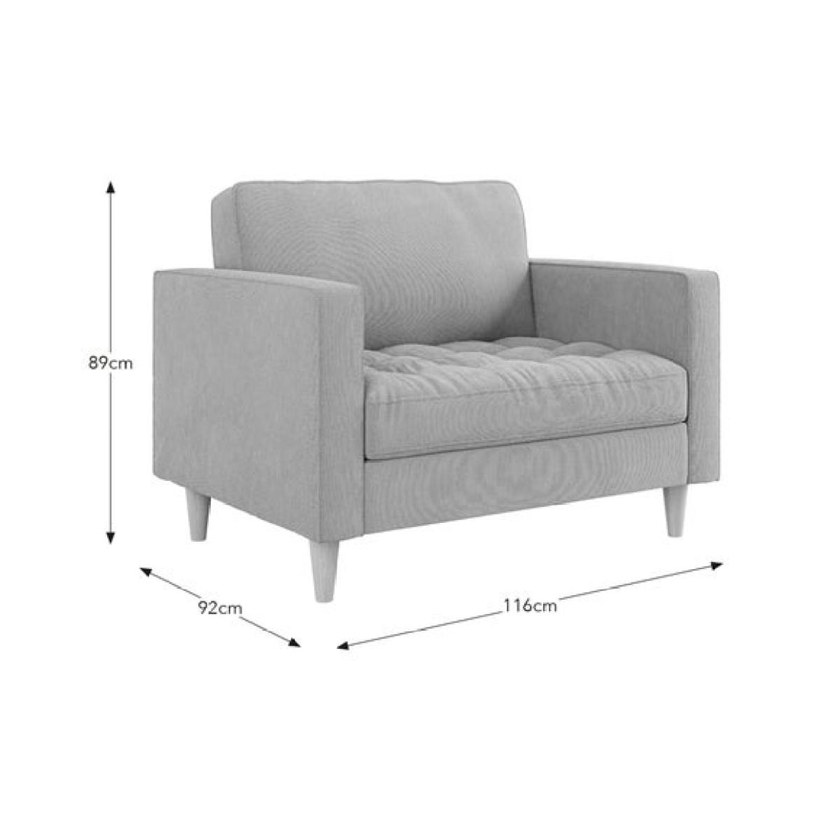 * Sleek, modern chair * Rubberwood legs * Foam and Fibre filled seat Crafted in our soft tonal chenille, this snuggle chair offers a beautifully balanced blend of comfort and style. The subtle texture of the fabric adds a calming, natural feel, while the improved seat cushion provides a deeper, more supportive sit.