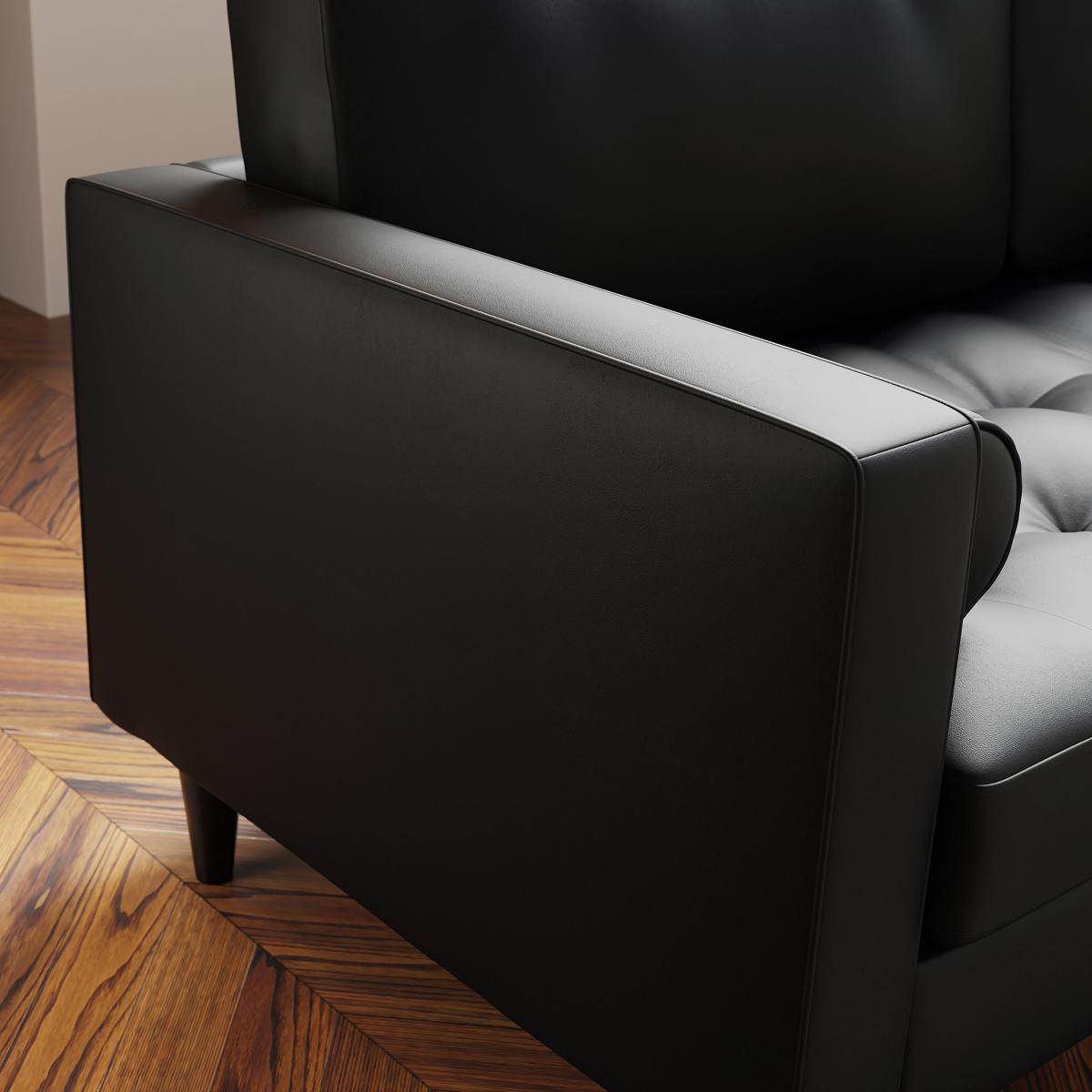 I love this two-seater as it delivers sleek, contemporary style with practical appeal. The black faux leather adds a modern, versatile touch that works well in minimal or urban interiors, while also being easy to maintain-perfect for busy households. It pairs beautifully with bold colours or contrasting textures, such as a plush velvet cushion or a chunky throw. To style the sofa, consider adding statement lighting above or a colourful rug underneath to ground the space. This piece fits well in open-plan living rooms or cosy corners, making it adaptable for both casual and more polished settings. Its compact size makes it ideal for smaller spaces or as a complementary seating option in larger rooms.