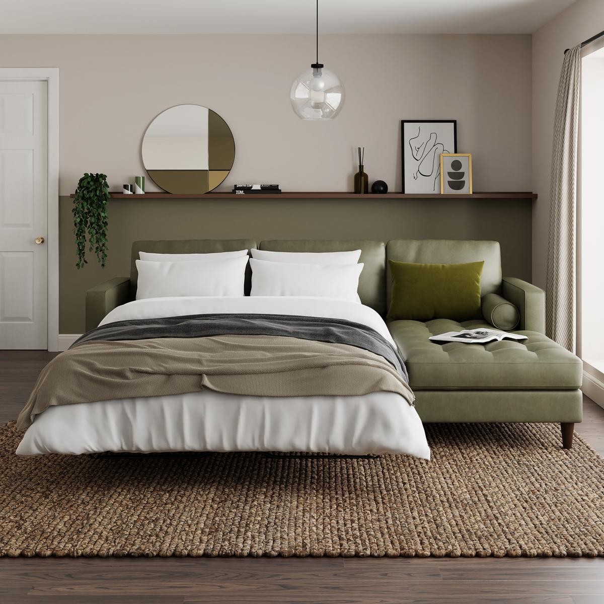 Zoe Faux Leather 3 Seater Corner Double Sofa Bed Faux Leather Green