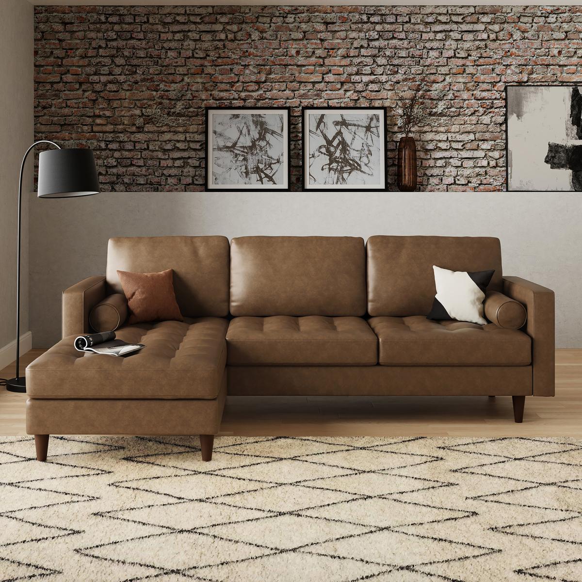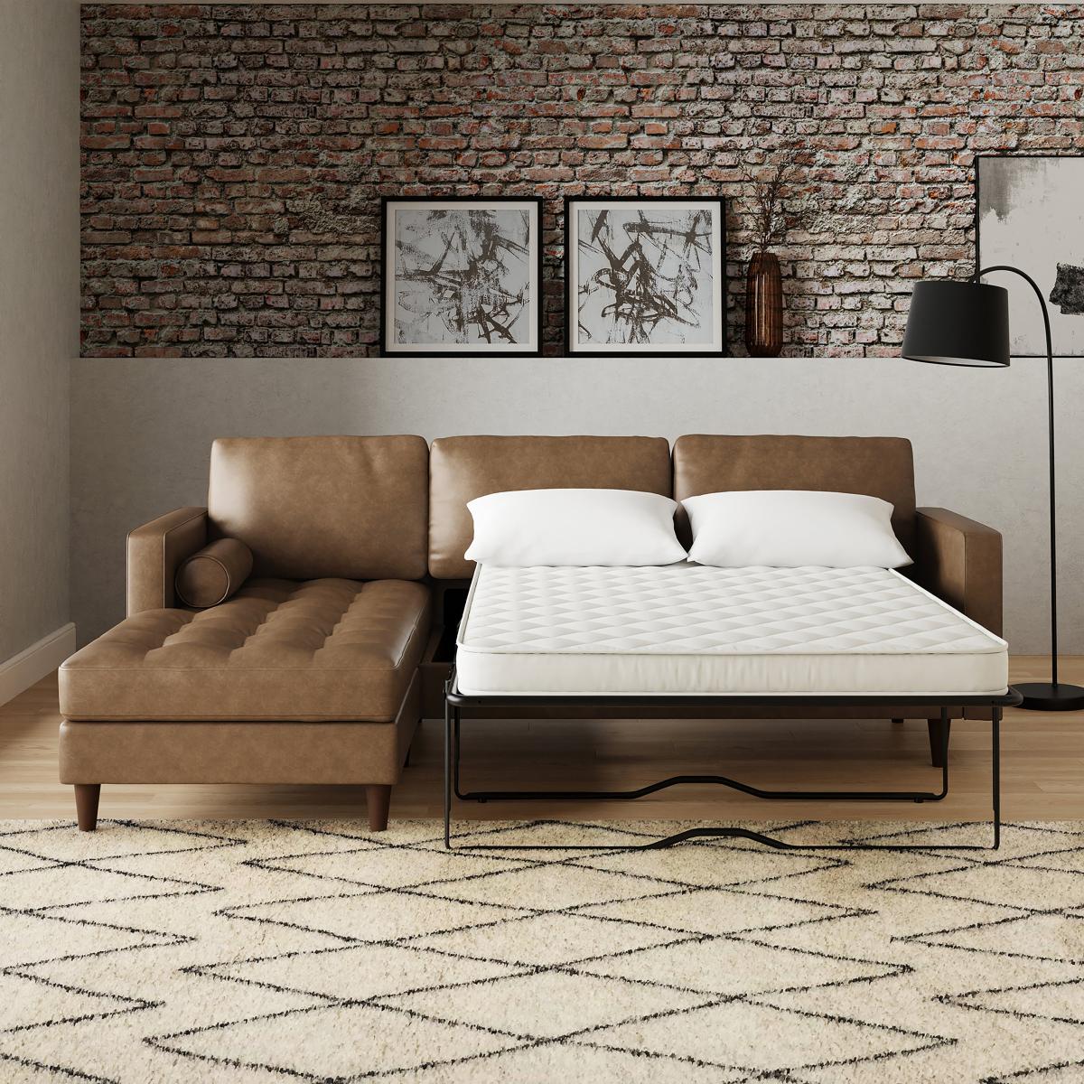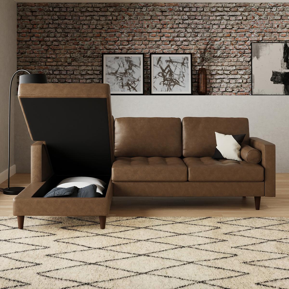 Zoe Faux Leather Corner Chaise Sofa Bed Faux Leather Mocha