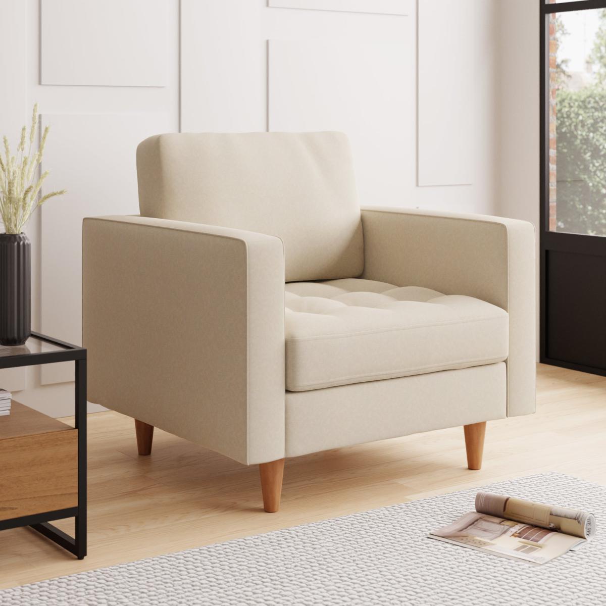 I really like this armchair for its clean, minimalist look and natural aesthetic. It works especially well in Scandi or contemporary interiors where neutral tones and simple forms dominate. The woven texture adds visual interest without overwhelming other design elements, making it versatile enough to fit both cosy living rooms and more open, airy spaces. When styling, consider pairing it with textured cushions or throws in muted colours to keep the look understated yet inviting. Practical tips include placing it near a good reading light or alongside a side table for added functionality, making it both stylish and comfortable for everyday use.