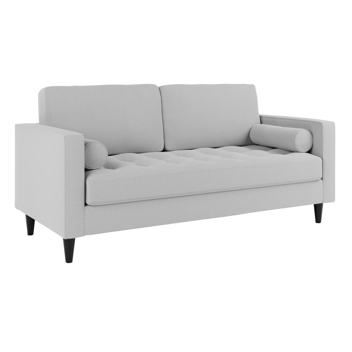 Introduce a stylish, retro-inspired look to your living or spare room with the gorgeous Zoe Boucle 3 Seater Sofa Bed. Finished in a trendy light grey colour, this sofa features soft and durable boucle fabric upholstery, styled with a gorgeous tufted seat cushion, piped edge detailing and stylish tapered solid wood legs. As stylish as it is comfortable, the Zoe is the perfect place to sit back and unwind, featuring a foam filled, spring seat, as well as two matching bolster cushions to boot. This sofa easily converts into a comfortable double bed for those impromptu overnight stays. Did you know, we now offer a 10 year frame guarantee on this sofa. To find out more, please. To check out our handy sizing guide to help you find out if you’ll be able to get your new furniture into your home. Need to throw out your old sofa first? View our information on. Furniture recycling and collections.