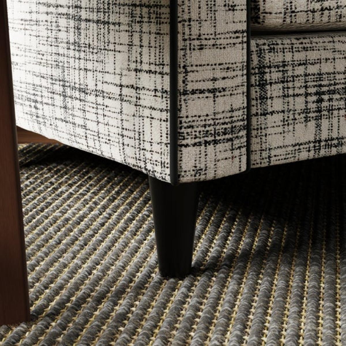 * Sleek, modern chair * Rubberwood legs * Foam and Fibre filled seat This snuggle chair takes a classic stripe and gives it a tactile twist with boucle fabric, creating a seat that’s full of texture and charm. The sculpted shape and supportive cushioning make it a cosy retreat, while the bold pattern adds a contemporary edge to your space.