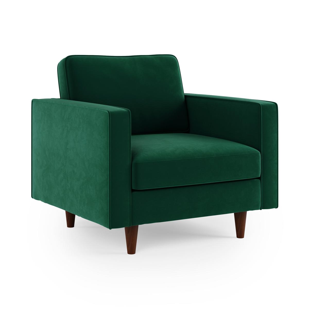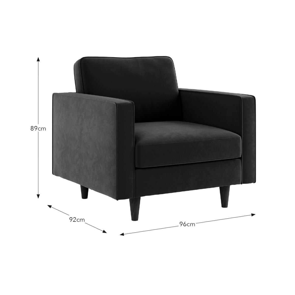 Dunelm Exclusive - Designed and Developed by Dunelm. The Zoe Armchair brings comfort and sophistication to any room. Upholstered in high-quality velvet, this armchair offers a plush and inviting place to sit while enhancing your space with its luxurious texture. Its sleek design and plush cushioning make it a versatile addition, ideal for creating a cosy reading nook or as a complementary accent in your living area.