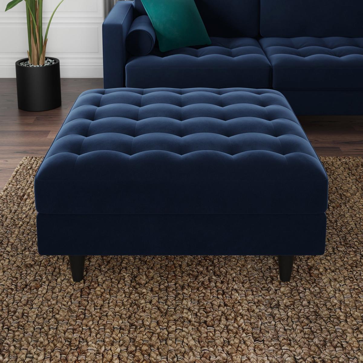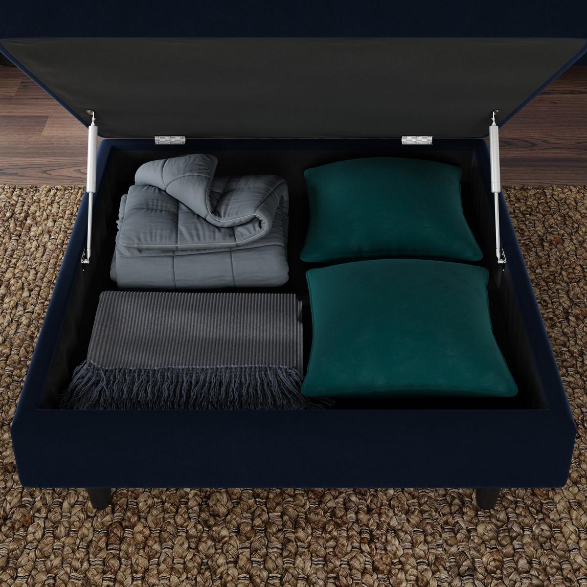 I love this footstool for its sleek navy velvet finish - it's a versatile piece that adds a touch of luxury to any living space. The Zoe square ottoman works particularly well in contemporary and modern interiors, especially when layering with matching or contrasting velvets for a rich, curated look. Its built-in storage makes it practical for keeping blankets, magazines, or other small items tidy, which is a real win in busier family rooms. For styling, try pairing it with a plush sofa, adding textured cushions or a chunky throw to build visual interest. It’s also a great piece to position under a window seat or in a cosy corner, making the most of its storage capacity and stylish appeal.