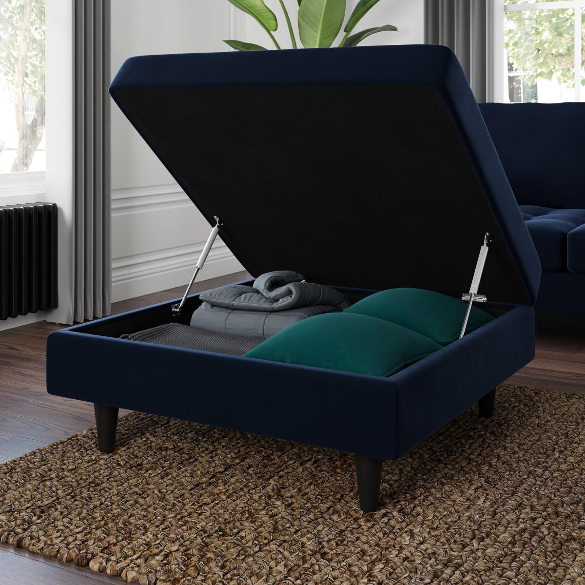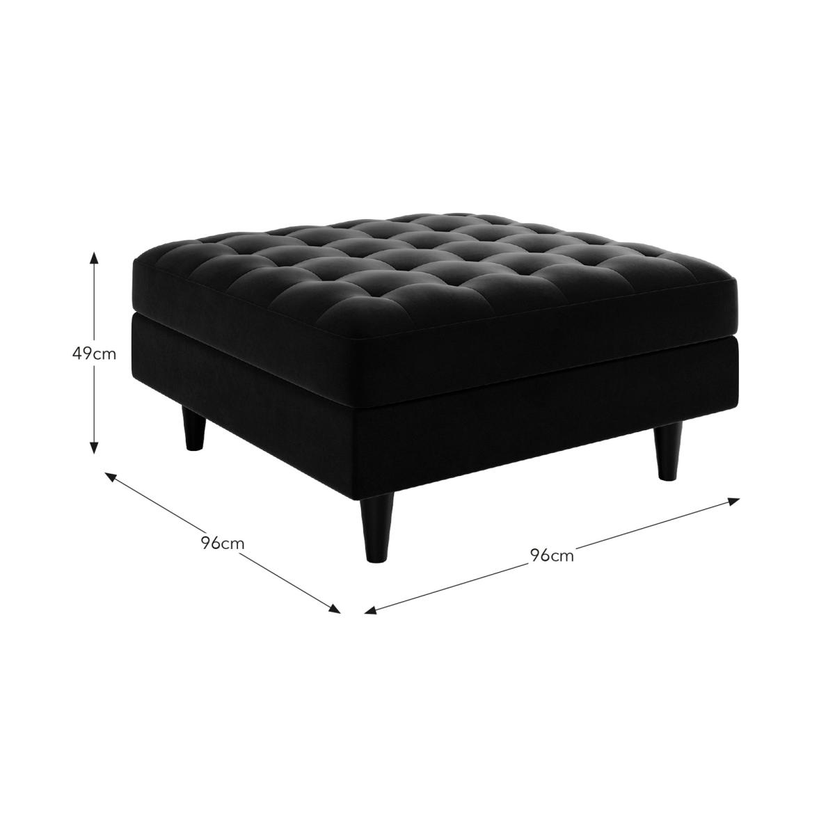 Dunelm Exclusive - Designed and Developed by Dunelm* Large Footstool with storage* Stylish velvet upholstery * Retro, tufted look* Foam filled, pocket sprung Featuring a soft touch velvet fabric, this footstool is both a stylish and practical addition to any home. Designed with a retro-inspired look featuring a tufted look and tapered wooden legs, this footstool doubles up as extra seating for guests. This footstool opens up to offers ample storage space, perfect for keeping your spare blankets or remotes.