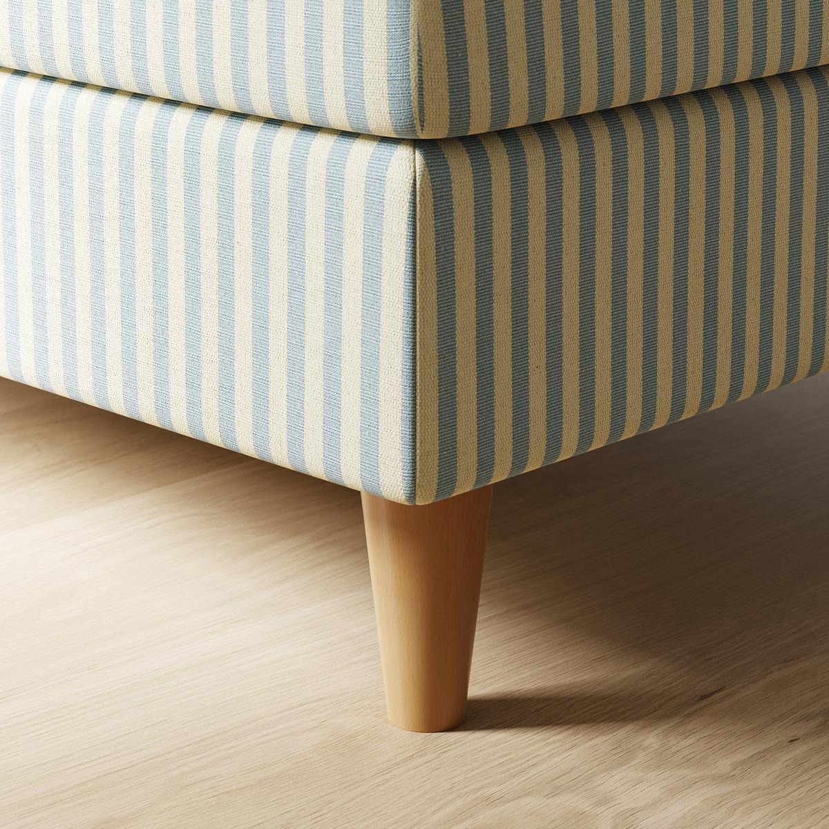 * Large storage compartment* Pinstripe fabric* Cotton blend With both comfort and functionality in mind, this footstool not only provides a comfortable place to rest your feet but also offers convenient storage space. Upholstered in a charming pinstripe fabric, it adds a touch of elegance to any room while seamlessly complementing a variety of decor styles. With its square design, this footstool is perfect for use as a coffee table or extra seating, making it a versatile piece for your home.