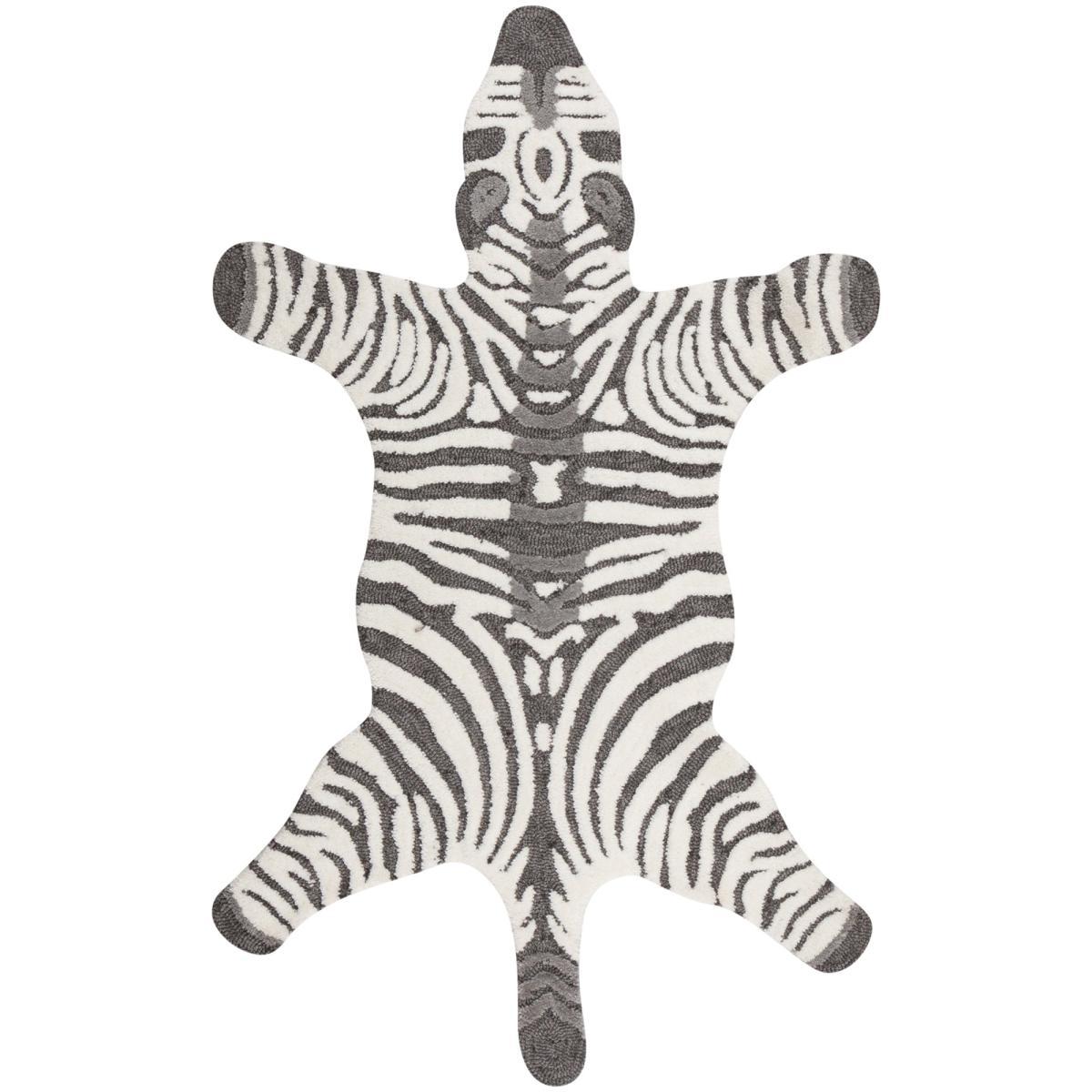 Spark your wild-child's imagination with the fun Zoe Zebra Shaped Kids Rug. This rug is designed with a playful Zebra profile in a shaggy cosy pile. Tufted in 100% polyester for enhanced durability, this children's rug is perfect for playtime. This rug is ideal for creating a statement spot in children's rooms and play areas. When opening, re-roll your rug pile out and leave in a warm room for 24 hours before putting in place, this will help to reduce wrinkles and curling from packing. A small amount of fibre loss is normal on a new rug. Do not pull any loose threads, please cut them carefully with scissors to remove. Avoid prolonged exposure to direct sunlight as this may cause fading of the colour. Turn your rug regularly to ensure even wear and reduce pressure marks from furniture. Before using any cleaning products on your rug, test on an inconspicuous area first to ensure it does not affect the colour. Clean spills immediately by blotting with a clean dry white cloth - do not rub as this may stain the fibres. Vacuum your rug regularly to remove everyday dirt, we recommend the use of a suction type vacuum cleaner as a rotating vacuum brush can cause damage to the pile surface. We recommend the use of an anti-slip mat beneath your rug to prevent it from slipping and sliding out of place. Latex is used on the back of this rug. Please do not leave babies or young children unsupervised on this rug.