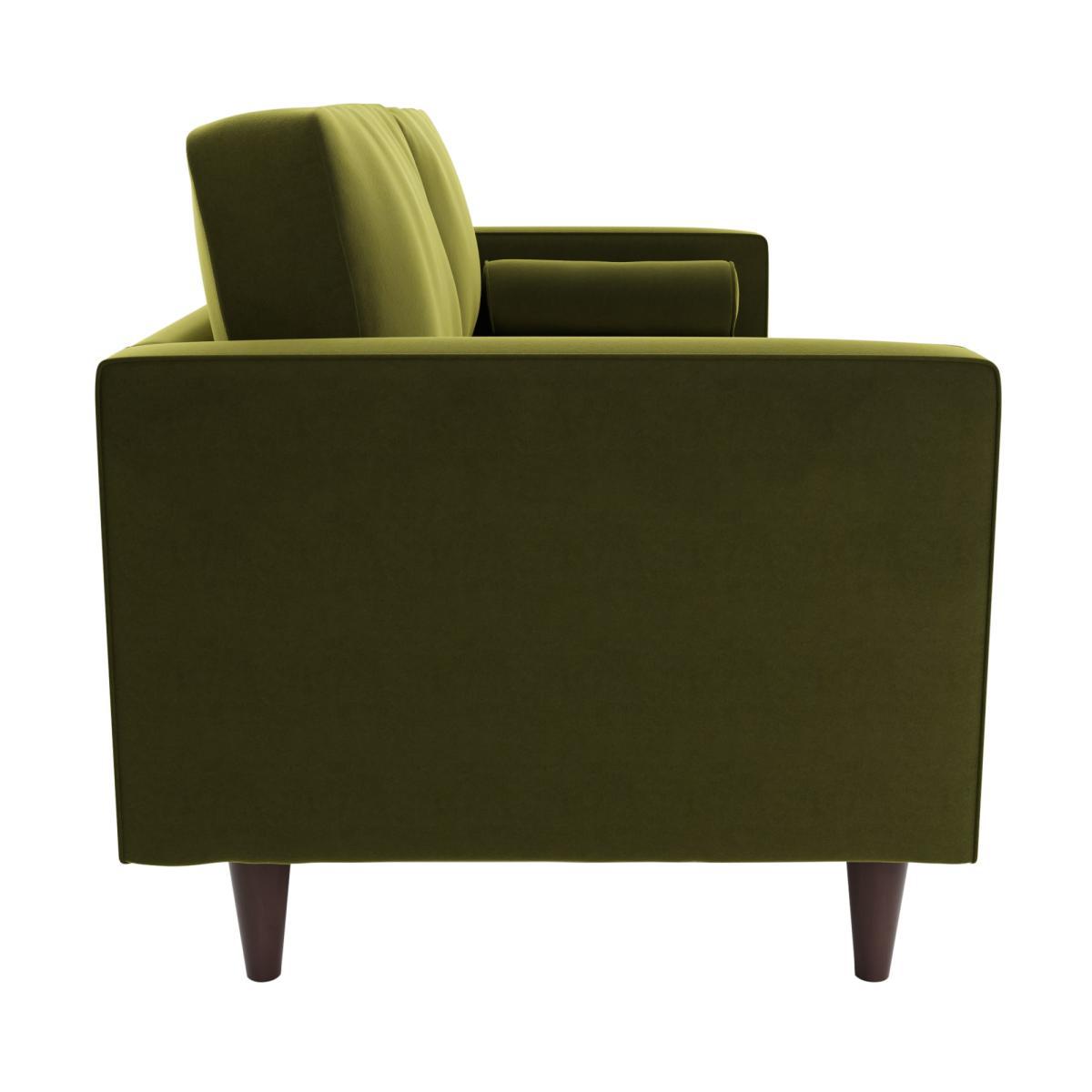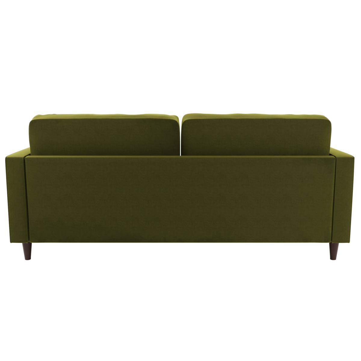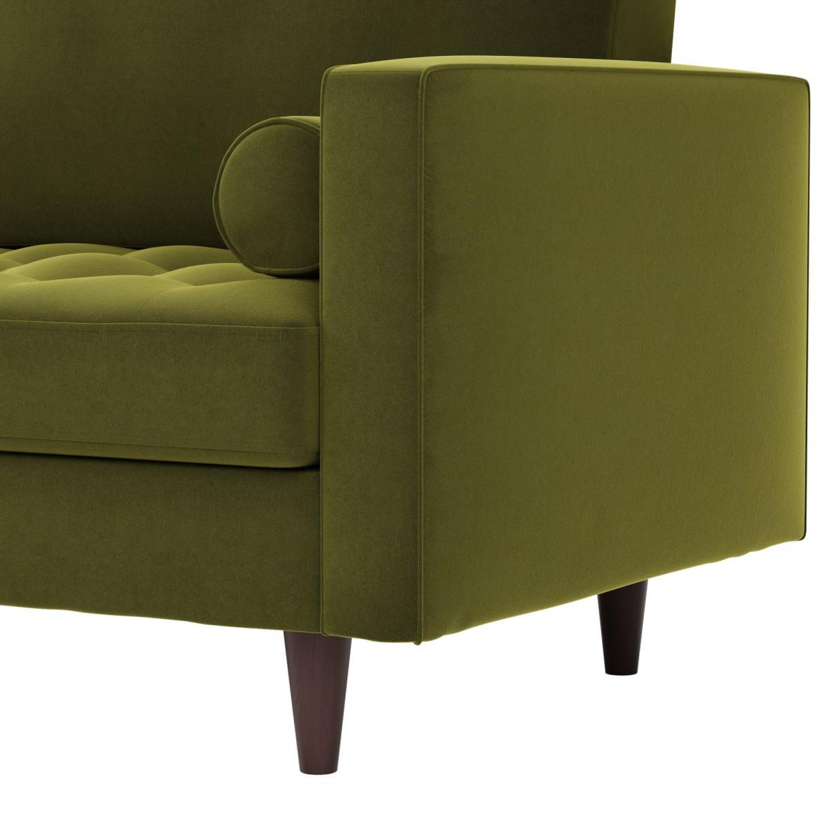 Bring some modern retro styling to your living room with the stylish Zoe 3 Seater Sofa. Available in a choice of bright and trendy colours, this sofa features soft touch velvet upholstery, styled with a gorgeous tufted seat cushion, piped edge detailing and stylish tapered solid wood legs. As stylish as it is comfortable, the Zoe is the perfect place to sit back and unwind, featuring a foam filled, sprung seat and fibre filled back cushions, as well as two matching bolster cushions to boot. Made with recycled materials. This sofa has non-reversible back cushions and a fixed seat cushion. Did you know, we now offer a 10 year frame guarantee on this sofa. To find out more, please. To check out our handy sizing guide to help you find out if you’ll be able to get your new furniture into your home.