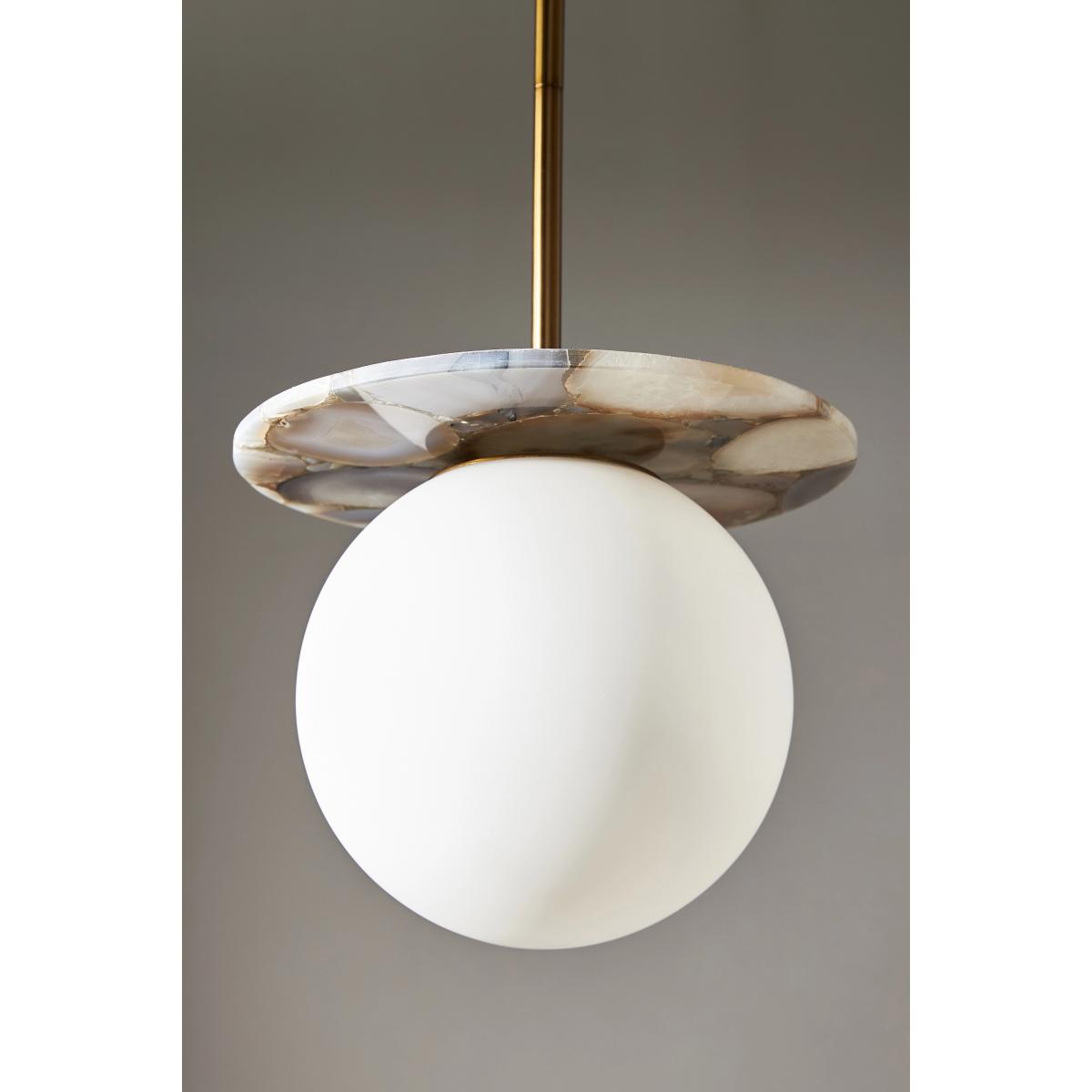 Featuring stunning agate and exquisite milk glass, the Zoey Agate Pendant Light illuminates dreamy and decadent moods. This item is CE listed, meaning it has been tested and approved to meet the government-regulated safety standards for the UK. Use with electrical outlets of 230v or lower, as anything higher can cause fire or injury. If you're purchasing this item for use outside of the United Kingdom, employ the adapter and voltage converter suited for your country Zoey Agate Pendant Ceiling Light by Anthropologie in Purple
