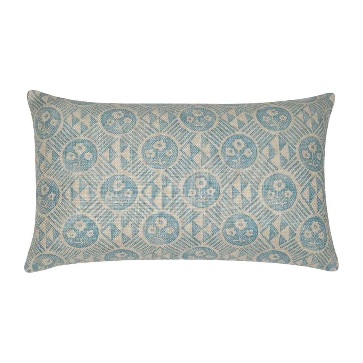A two-tone Zoffany cushion cover, featuring a pattern of alternating diamonds and framed flowers.