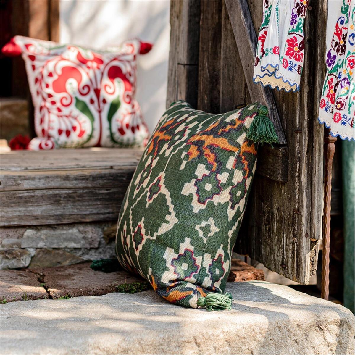 I love the Zold cushion’s vibrant pattern, which makes it a great statement piece for adding colour and texture to neutral sofas or beds. Its 50x50cm size is versatile, working well in both living rooms and bedrooms, whether layered with other cushions for a relaxed, eclectic look or used solo for a bold pop of pattern. The tassel detailing at the corners adds a touch of playful charm, making it suitable for casual, boho, or contemporary interiors. For styling tips, try pairing it with solid-coloured cushions to let the pattern stand out or mix different patterns for an inviting, layered effect. It’s practical too-durable-looking and easy to coordinate with various colour schemes, making it a smart choice for everyday use.
