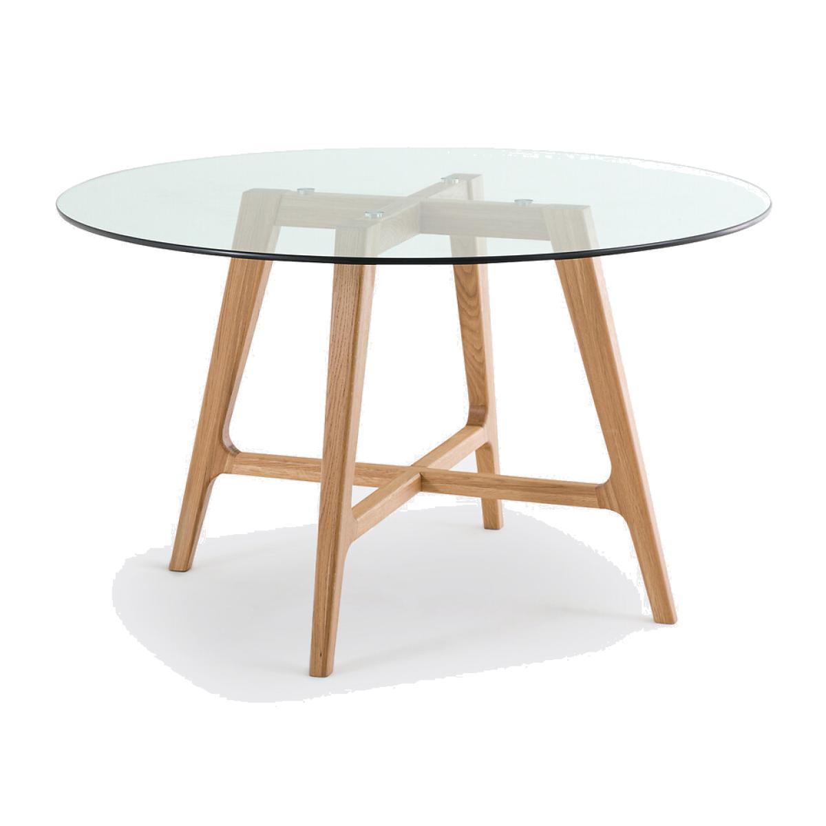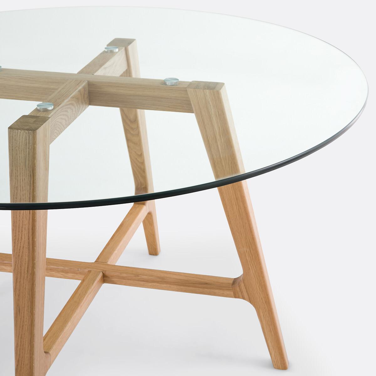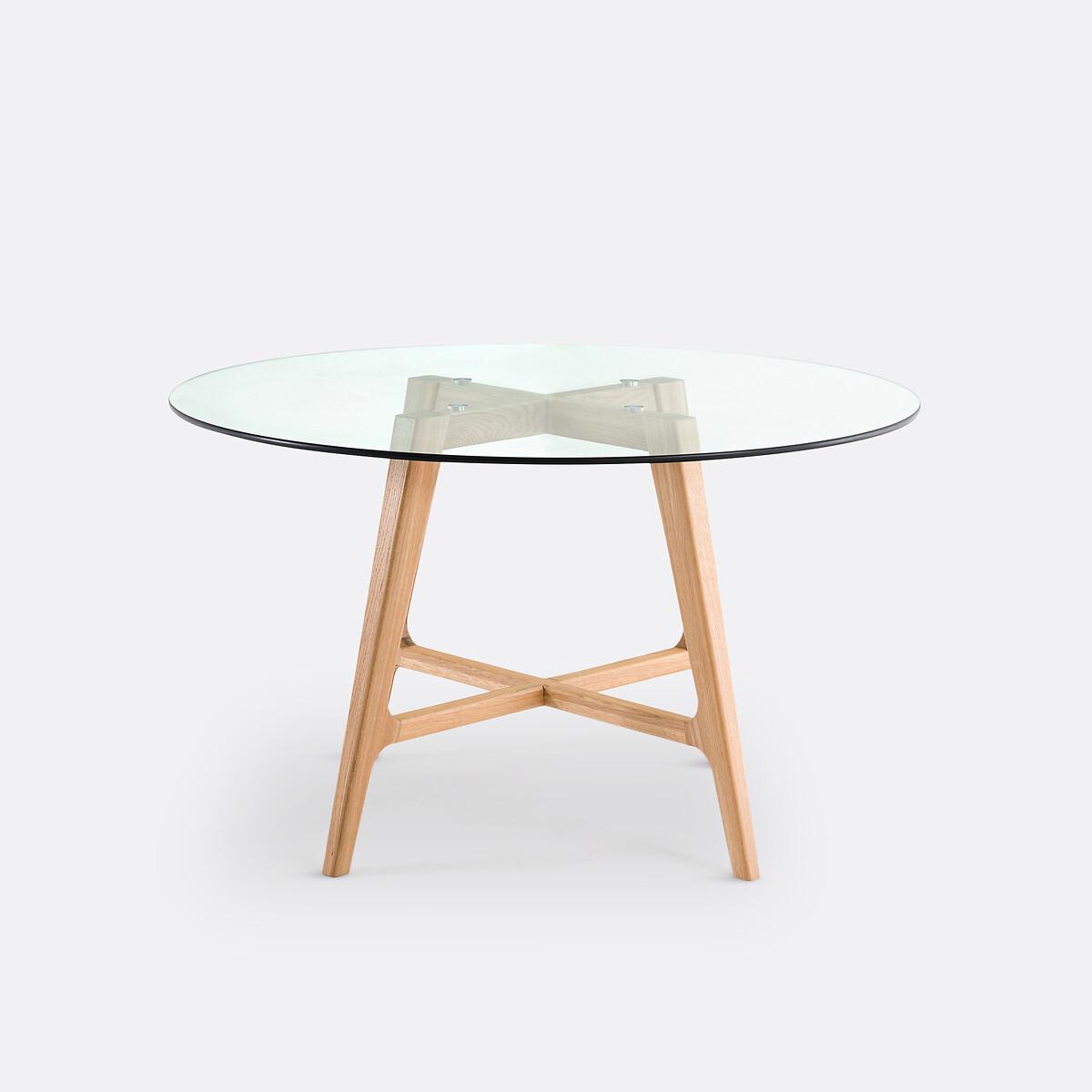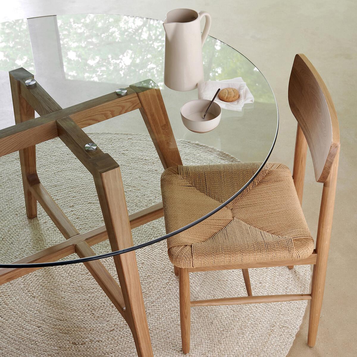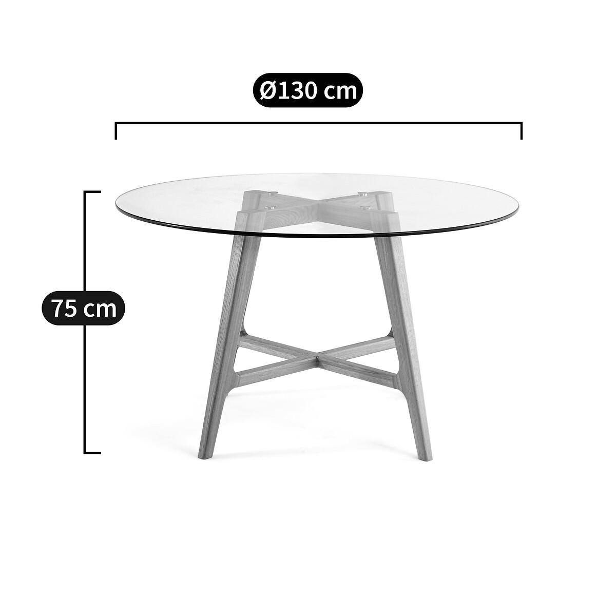 The Zoleta round table designed with tempered glass top plays with transparency for a modern design. With its pretty oak base, a design by La Redoute Interiors. Product Details • Tempered glass top, thickness 12mm. • Solid oak base, nitrocellulose varnish finish • FSC® certified wood • Ideal for 4, and up to 6 place settings. Care Advice • To protect your table, consider trivets, coasters and placemats. Dimensions • Width: 130cm • Height: 75cm • Depth: 130cmDelivery:. This product required assembly. Available for home delivery. • WOOD FROM SUSTAINABLY MANAGED FORESTS. FSC® certified wood comes from forests that are environmentally, socially and economically well managed. Dimensions and weight of parcel2 parcels • L108 x H15 x D84cm, 14kg • L140 x H6 x D138cm, 43kg