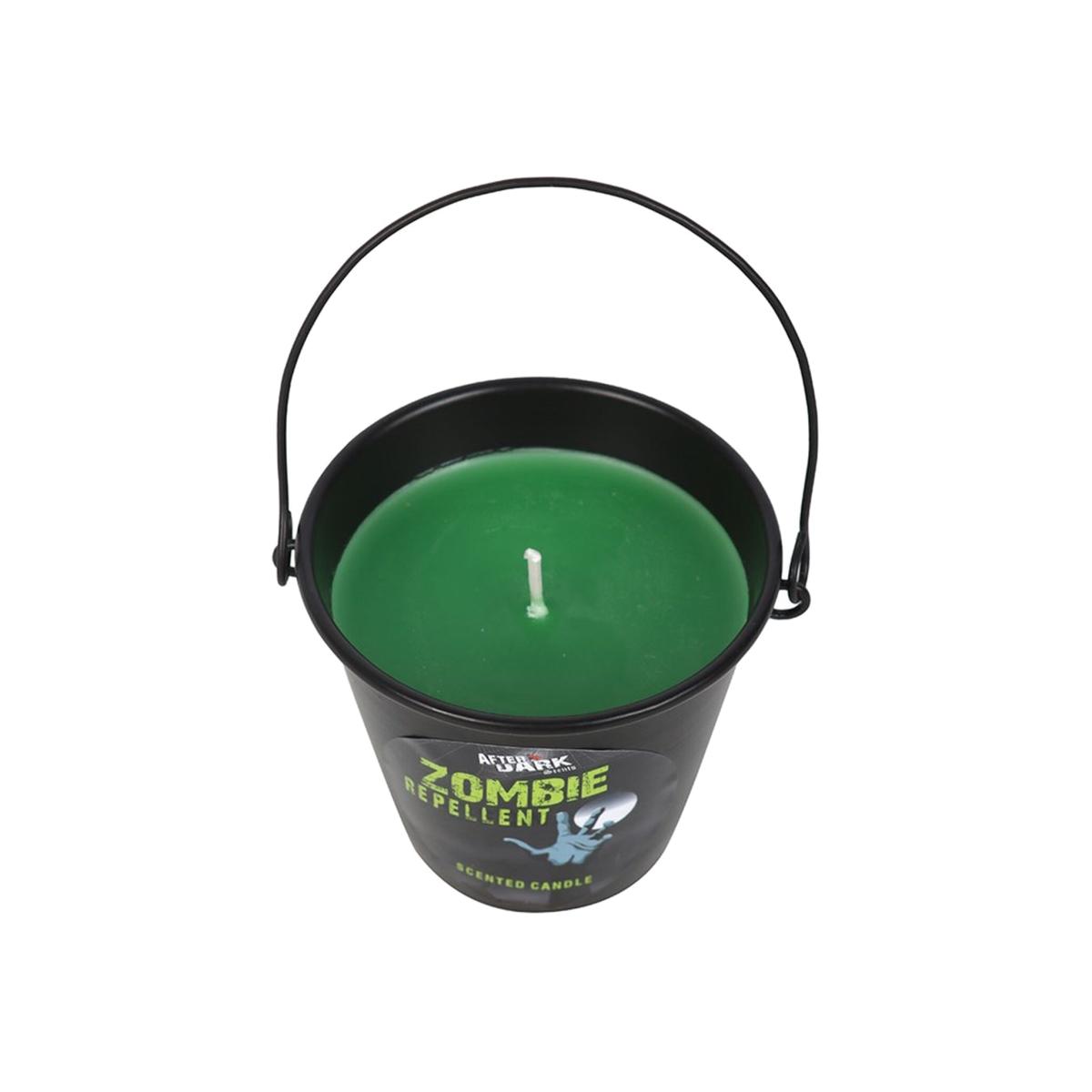 Ward off the undead with this Zombie Repellent scented candle. Features a bewitching jasmine fragrance and a metal bucket holder for keeping mutants at bay. Paraffin wax. Approximate burn time of 20 hours. Part of the After Dark collection of gothic home fragrance accessories.