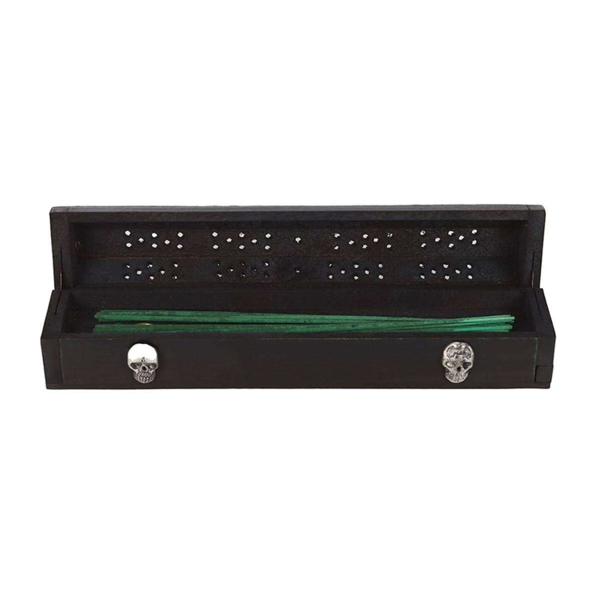I love this zombie repellent incense box for adding a touch of eclectic charm to darker, gothic-inspired interiors or themed spaces. Its sleek black design with skull details makes it a stand-out piece that works well in paranormal or alternative aesthetics, but can also add an unexpected twist in modern or industrial settings. To style it effectively, try placing it on a vintage dresser or alongside other quirky collectibles, keeping it as a conversation starter. Practical tips include pairing it with deep-toned candles or incense burners to create a moody, inviting atmosphere-perfect for a cosy nook or themed cabinet. It's a fun and functional accent, especially suited for those who enjoy a touch of the macabre with their decor.