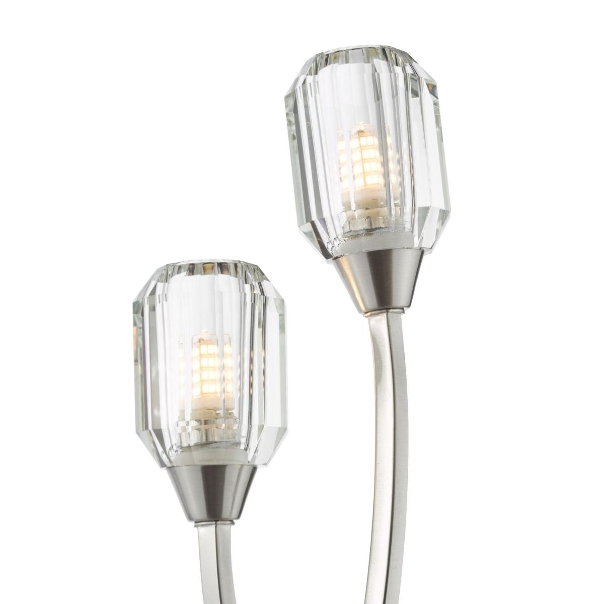 Zonda 2-light wall light, featuring two sweeping arms, faceted glass shades and a brushed nickel finish. The Zonda wall light offers a graceful and modern aesthetic, perfect for elevating any interior space. Its design features two elegant arms that entwine with each other, showcasing a sense of balance and movement. The faceted glass shades add a touch of sophistication, beautifully refracting light to create a soft, ambient glow. The light is finished in brushed nickel, giving it a sleek and contemporary appeal while ensuring durability. Ideal for use in living rooms, hallways or bedrooms, this wall light provides both functional illumination and decorative charm. Zonda 2-light wall light, featuring two sweeping arms, faceted glass shades and a brushed nickel finish. The Zonda wall light offers a graceful and modern aesthetic, perfect for elevating any interior space. Its design features two elegant arms that entwine with each other, showcasing a sense of balance and movement. The faceted glass shades add a touch of sophistication, beautifully refracting light to create a soft, ambient glow. The light is finished in brushed nickel, giving it a sleek and contemporary appeal while ensuring durability. Ideal for use in living rooms, hallways or bedrooms, this wall light provides both functional illumination and decorative charm.